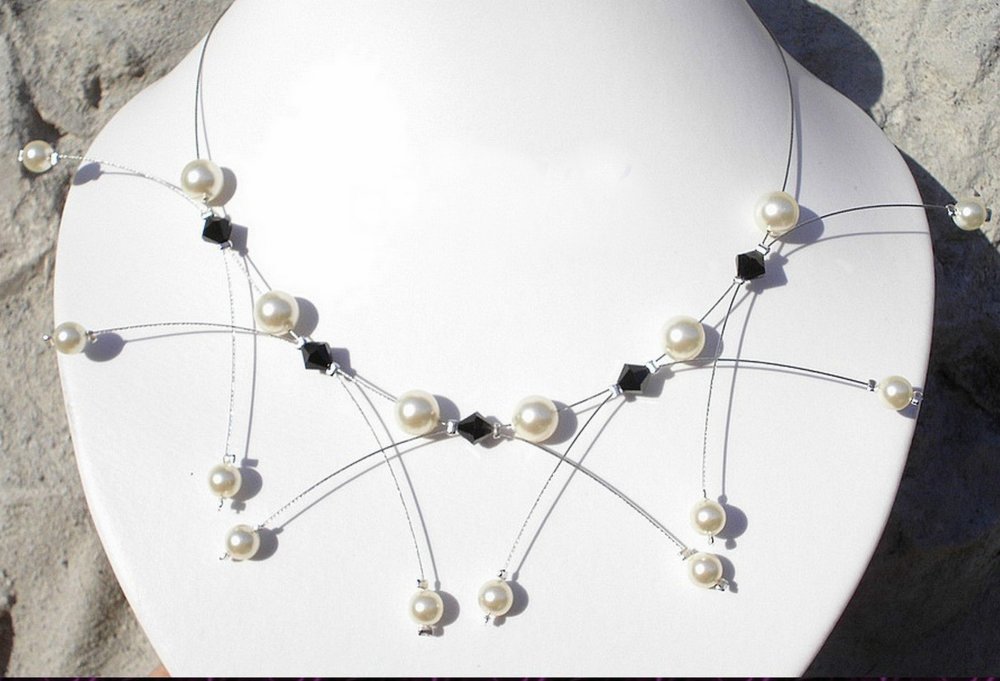 Collier étincelle noir et ivoire n°1. Bijoux mariage, collier mariée, collier cérémonie.