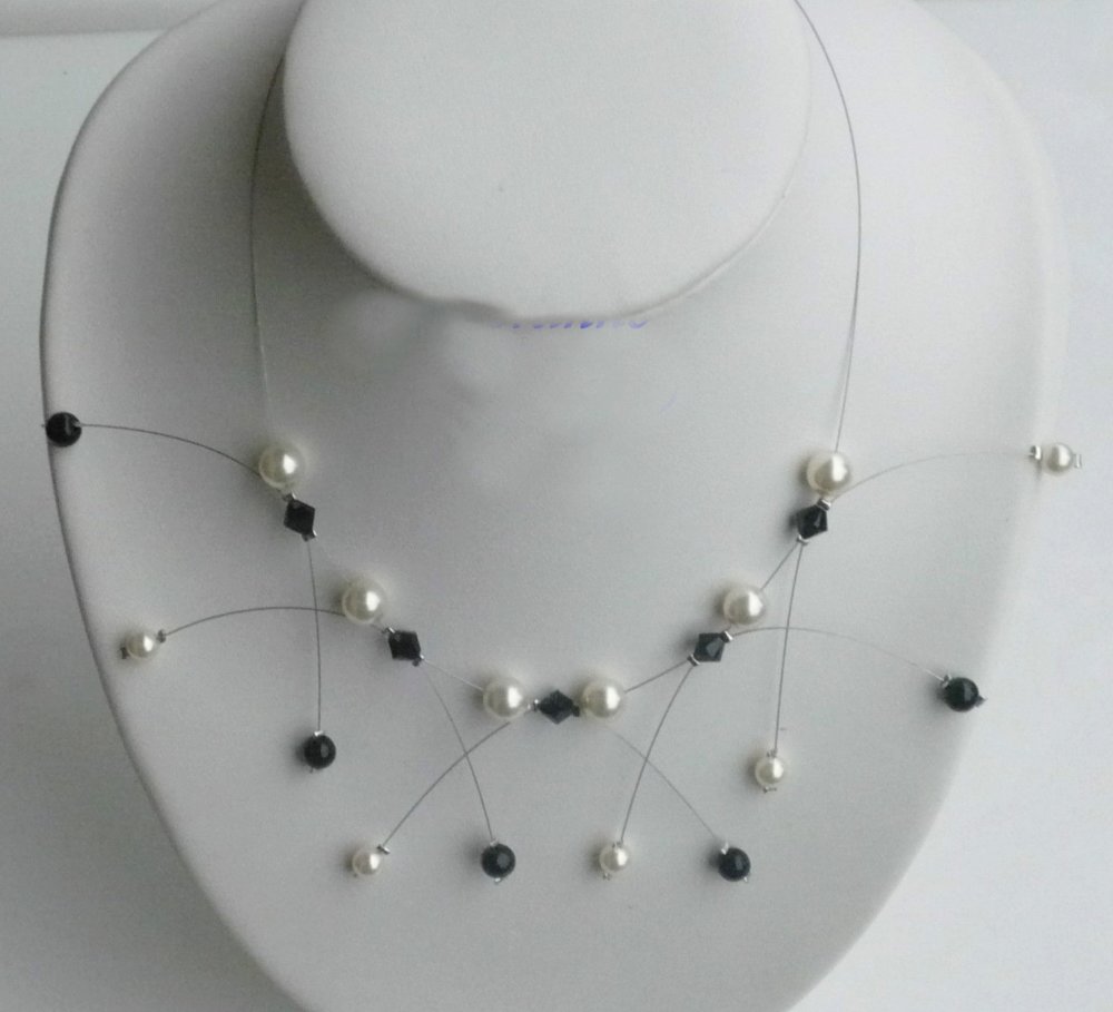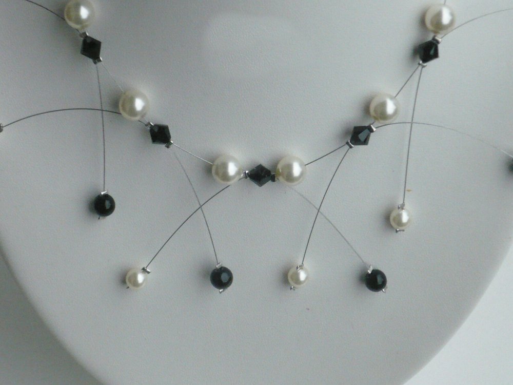Collier étincelle noir et ivoire n°2. Bijoux mariage, collier mariée, collier cérémonie.