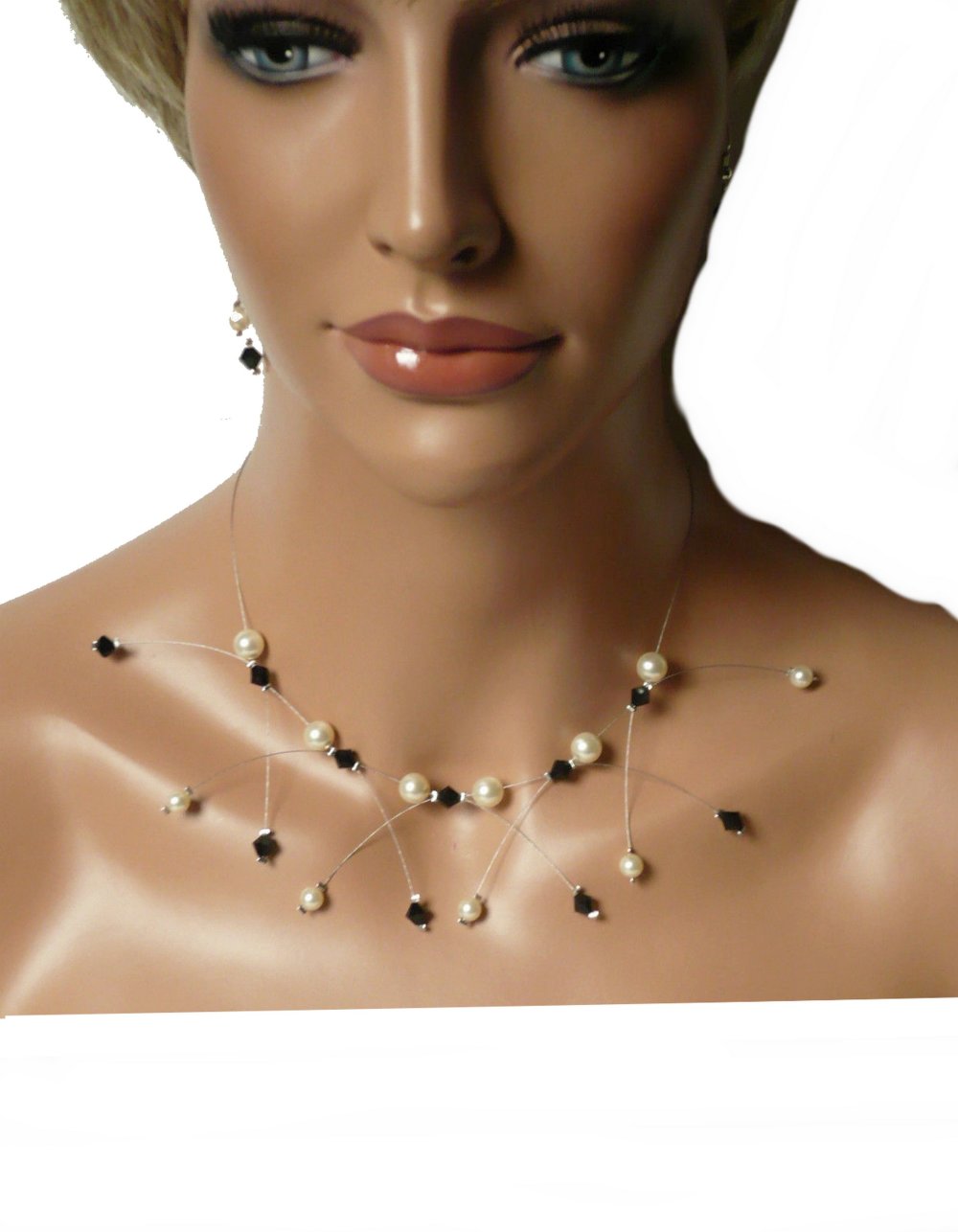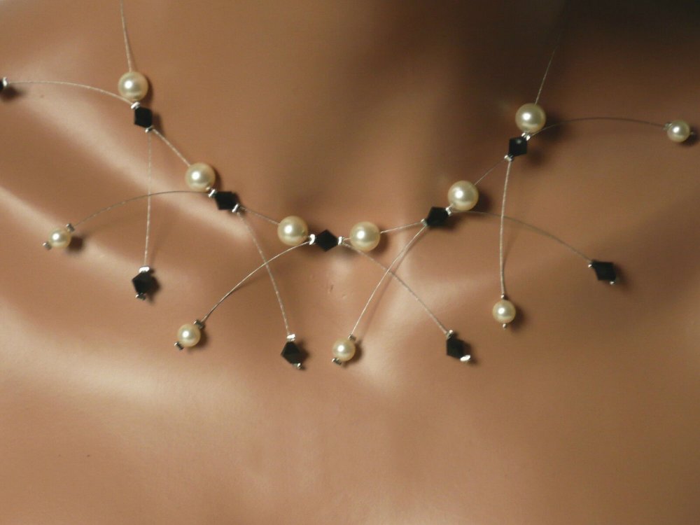Collier étincelle noir et ivoire n°3. Bijoux mariage, collier mariée, collier cérémonie.