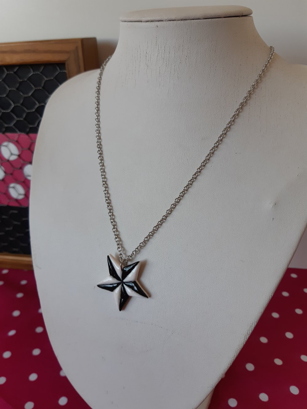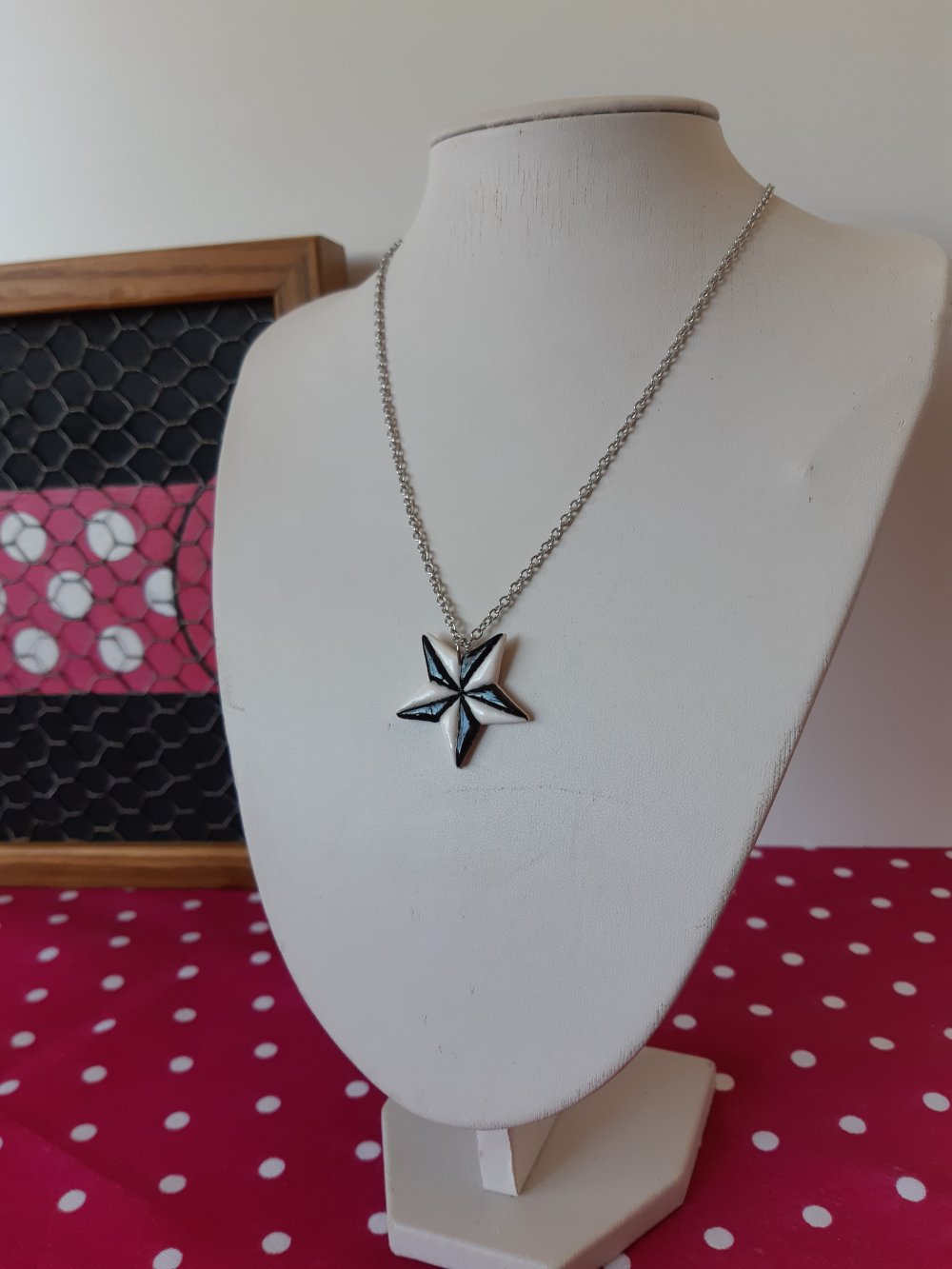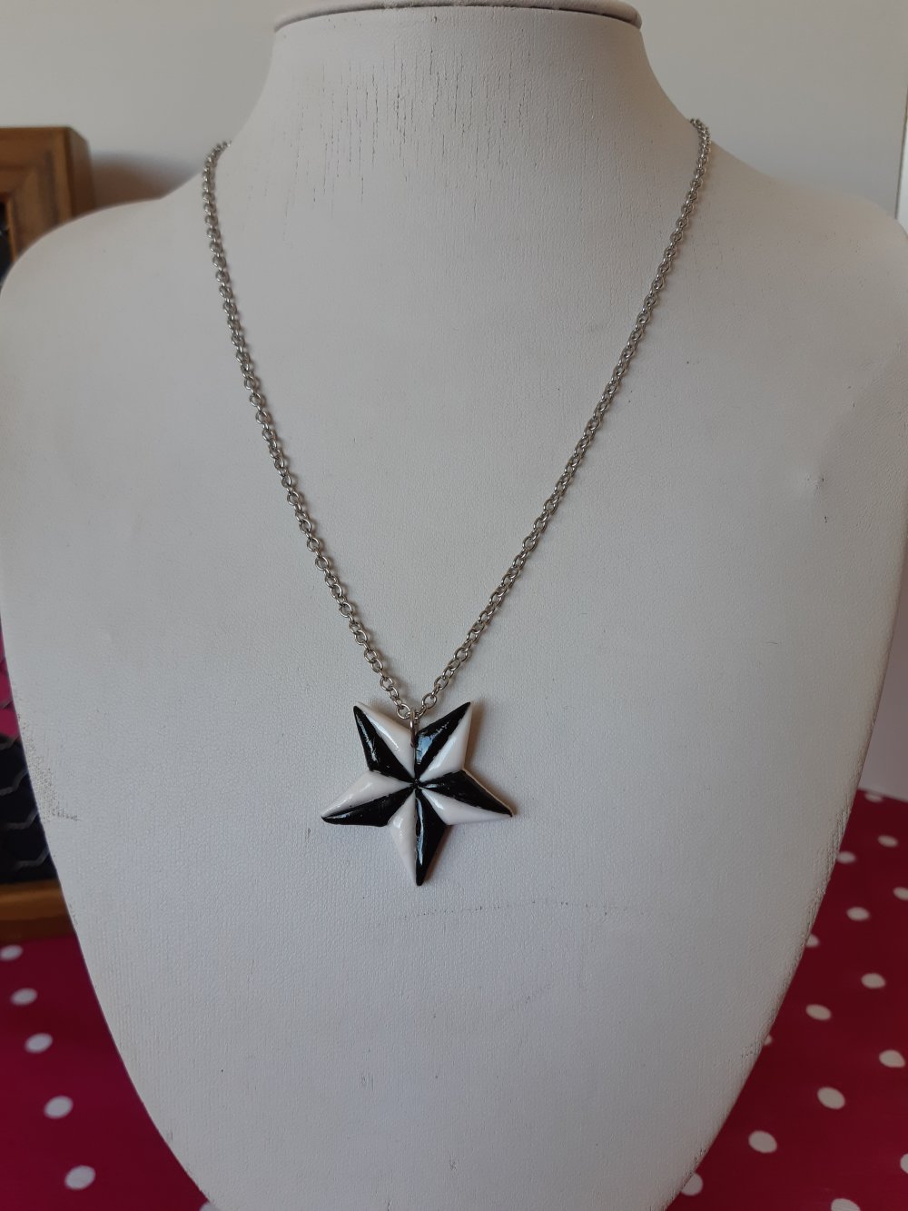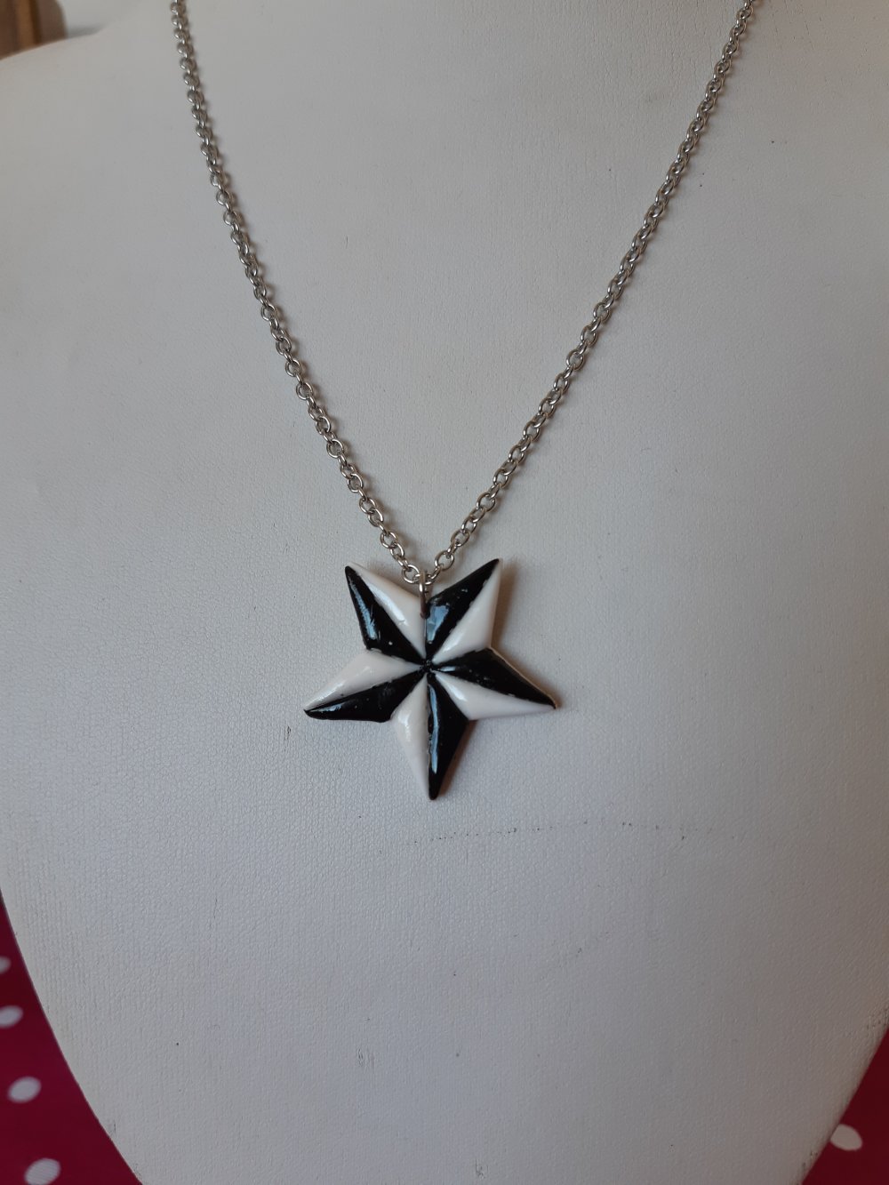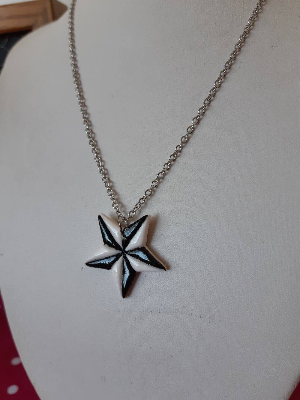 Collier sur chaine en acier de longueur ajustable avec en pendentif l'étoile rock noire et blanche à cinq branche, un icone classique et emblématique !