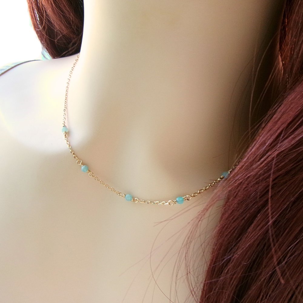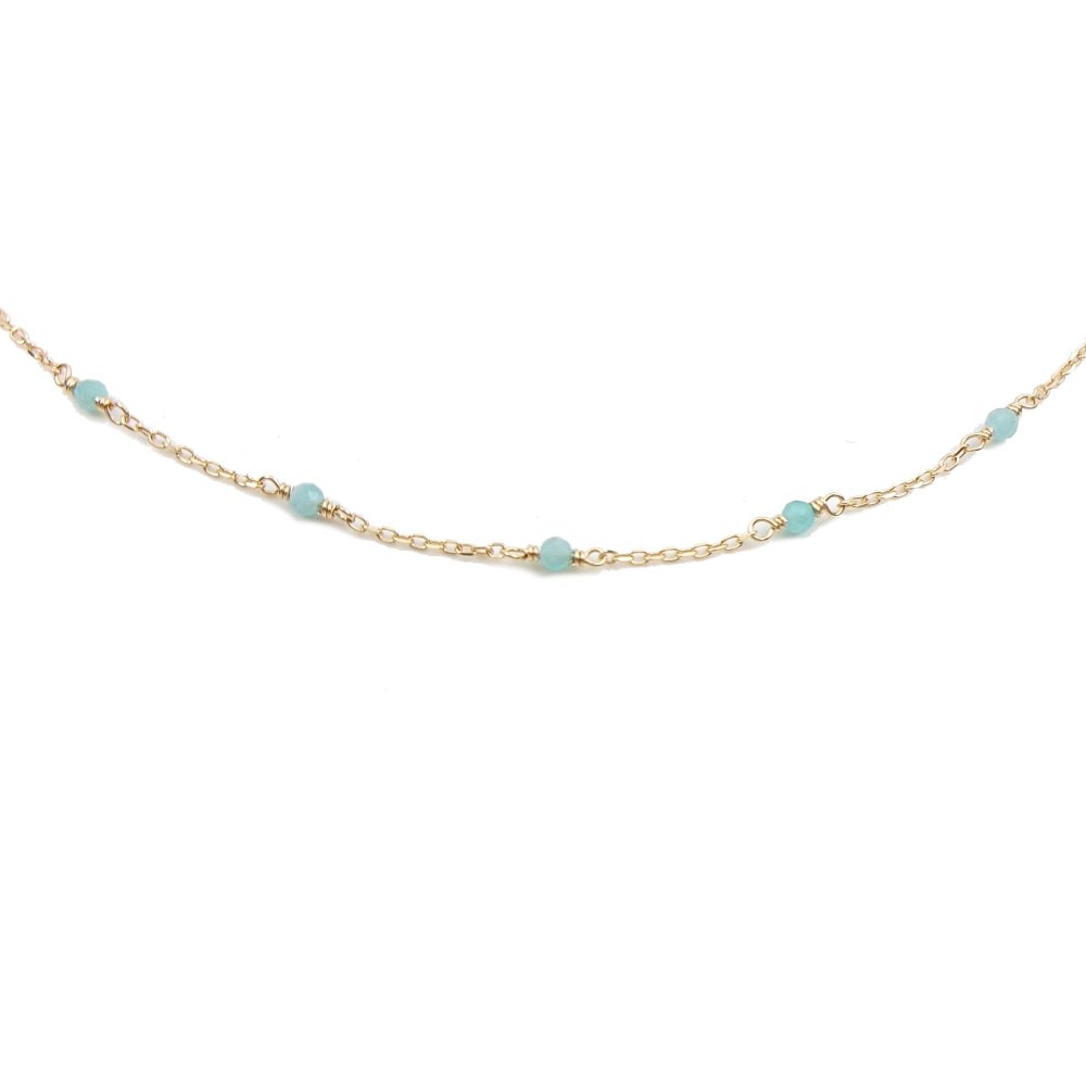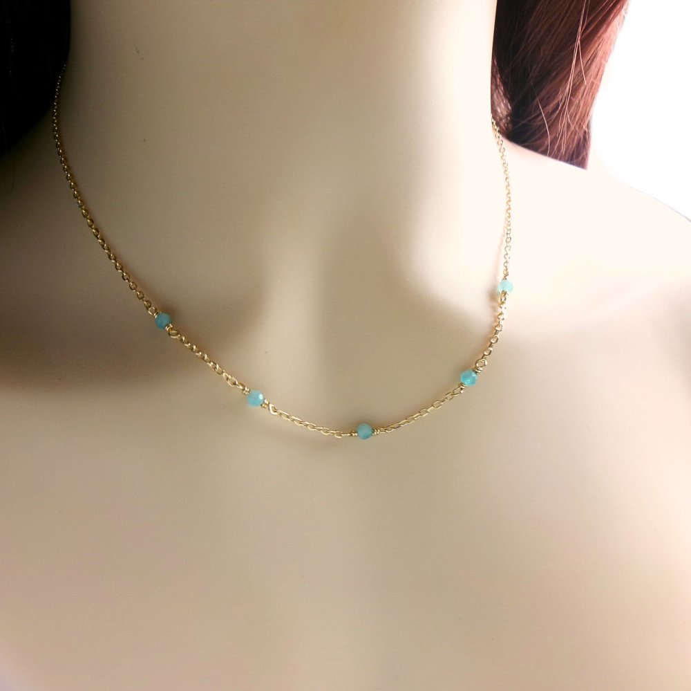 Collier raffiné en or 18k, orné de pierres naturelles d’amazonite aux teintes bleues et vertes.