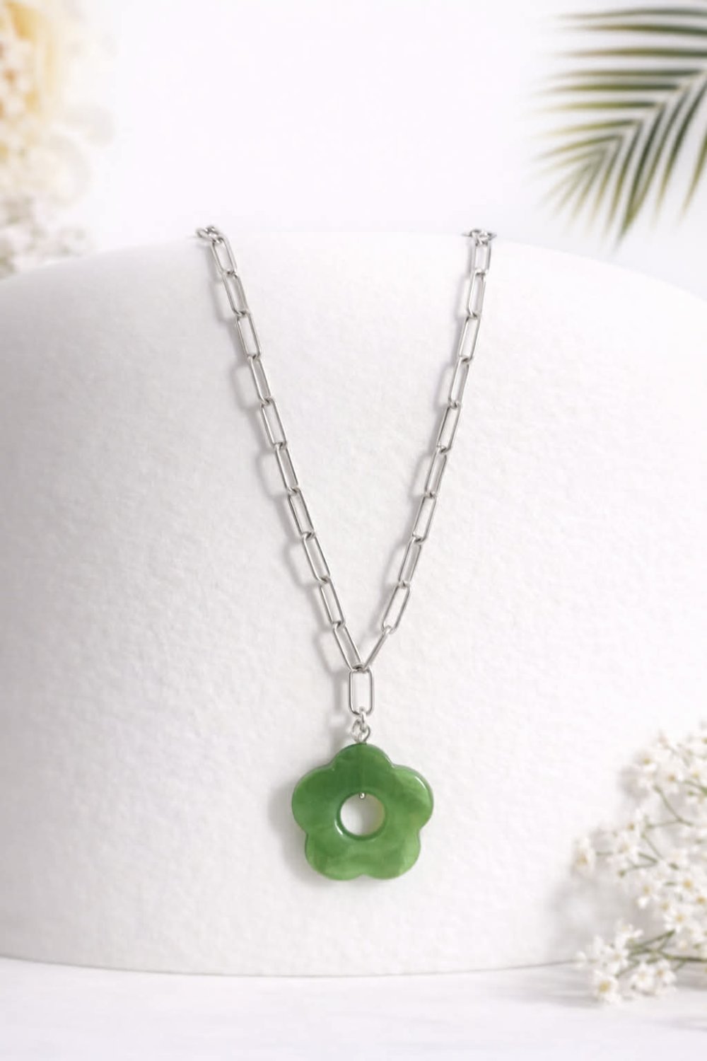 Chaîne en acier inoxydable 45cm+5cm de rallonge accompagné de sa breloque fleur.
