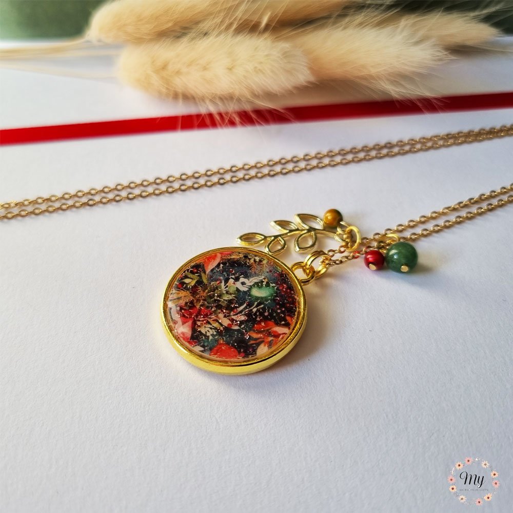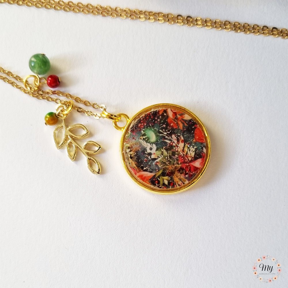 -Motif : floral & végétal, couleurs noel traditionnel, rouge et vert.
