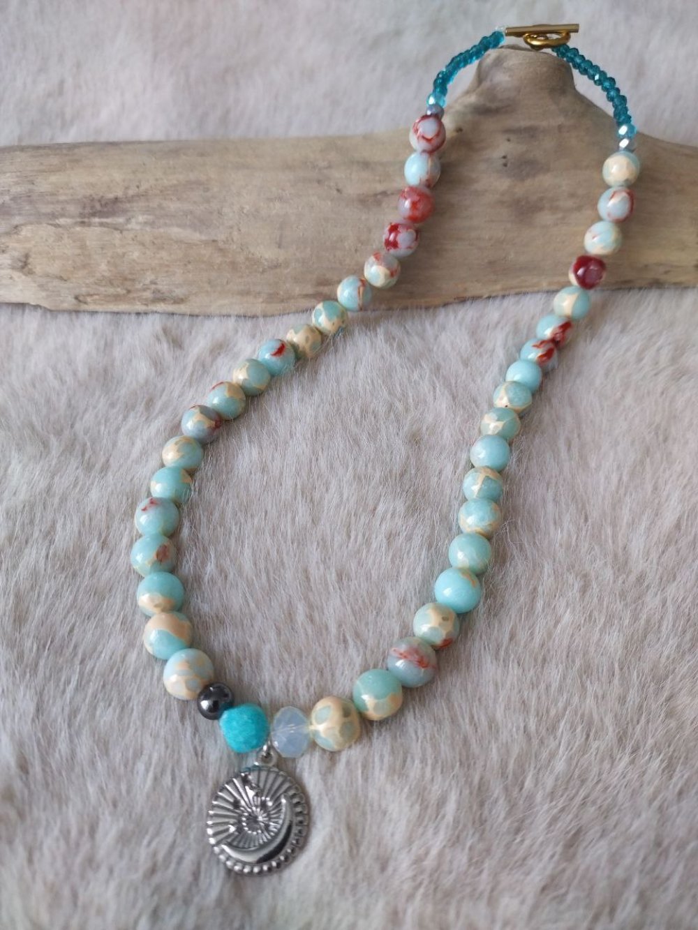 Ce bijou unique allie pierre jaspe, hématite ⚪ et amazonite 💚 pour créer une harmonie profonde sur le thème de la mer 🌊.
