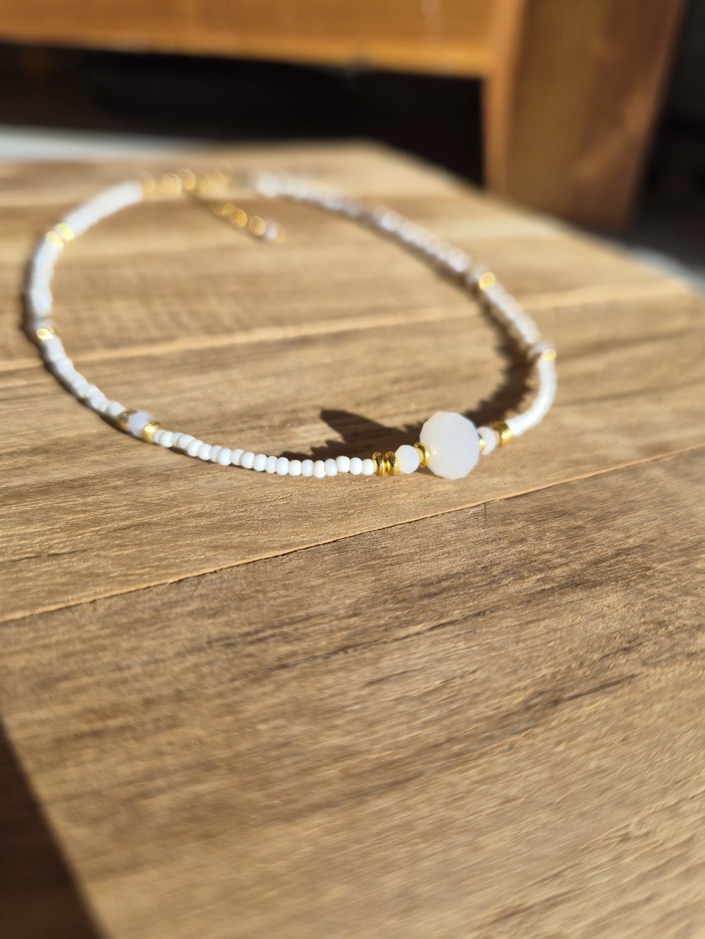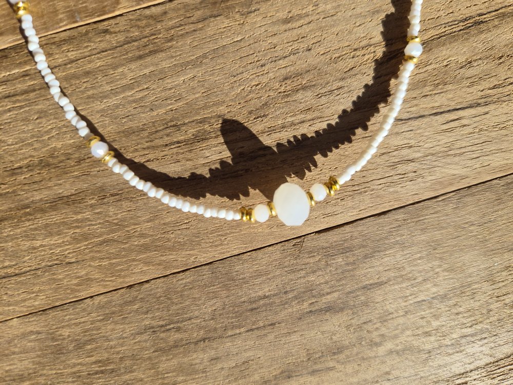 Collier blanc & doré réglable (35 + 6 cm) - inox