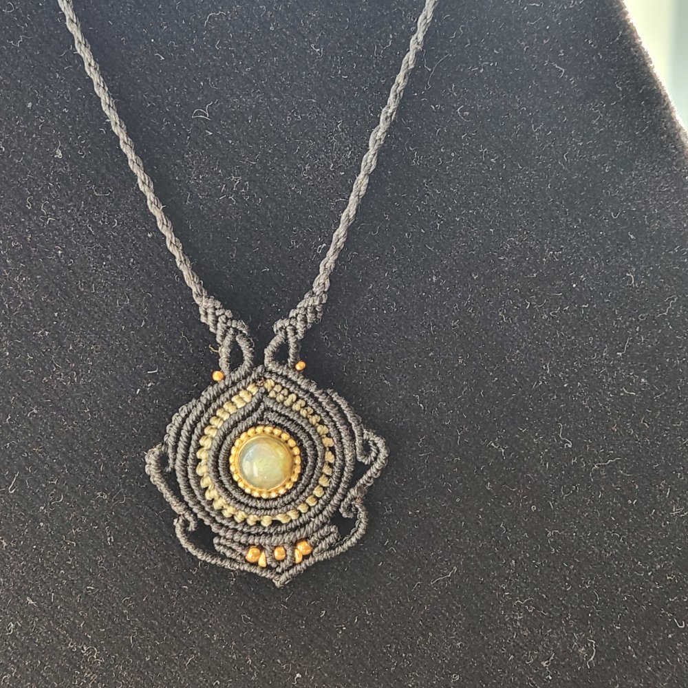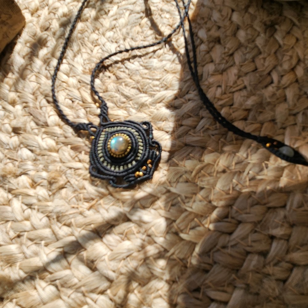 fil nylon noir , pierre sertie laiton 10mm ,rocailles miyuki (verre compressé) environ 25mm