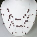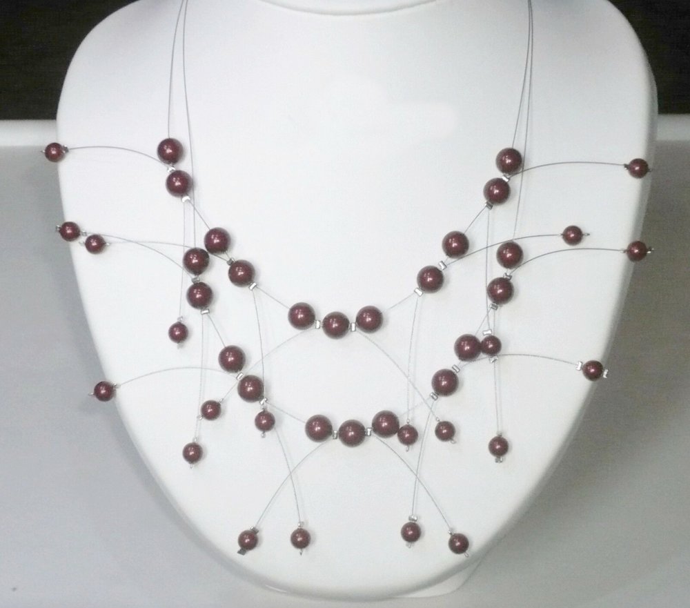 Fabriqué à la main, les bijoux sont surtout fait avec du fil câblé ou nylon, les perles sont en cristal de swarovski, verre de bohème.