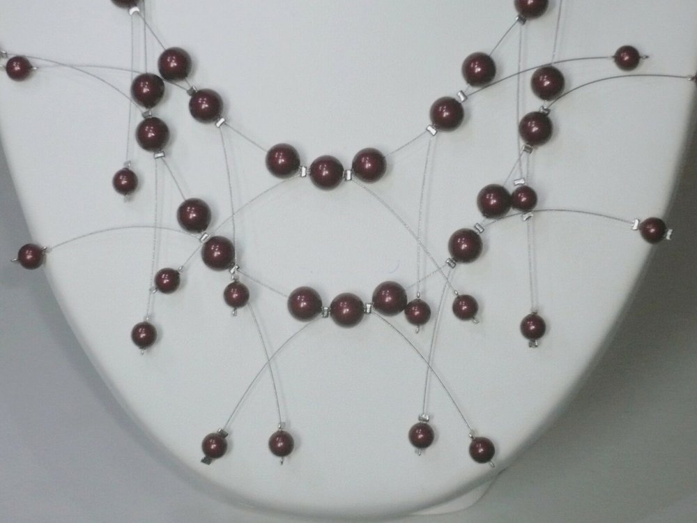 Collier mariée Double étincelles bordeaux n°1. Bijoux mariage, collier mariée, collier cérémonie.