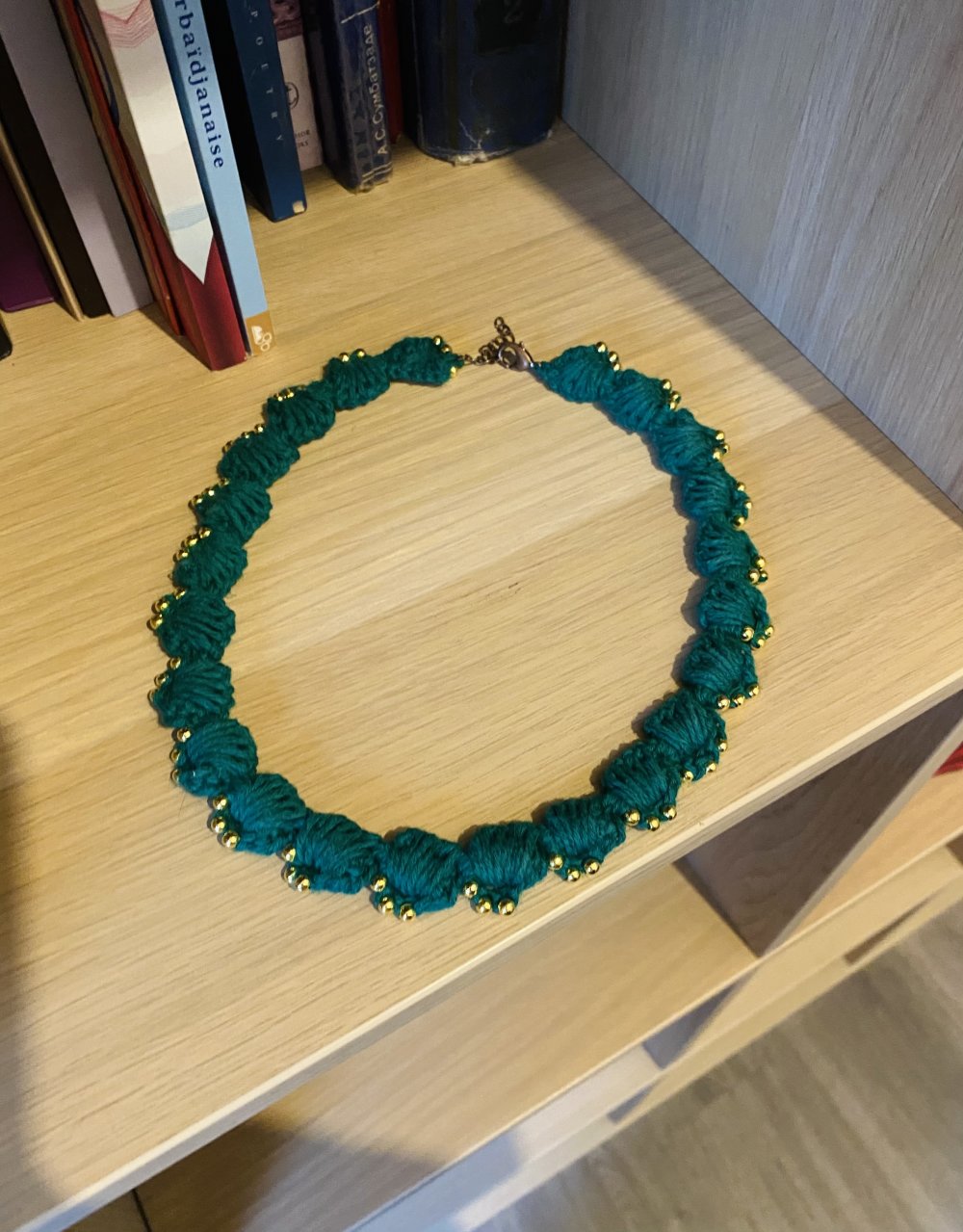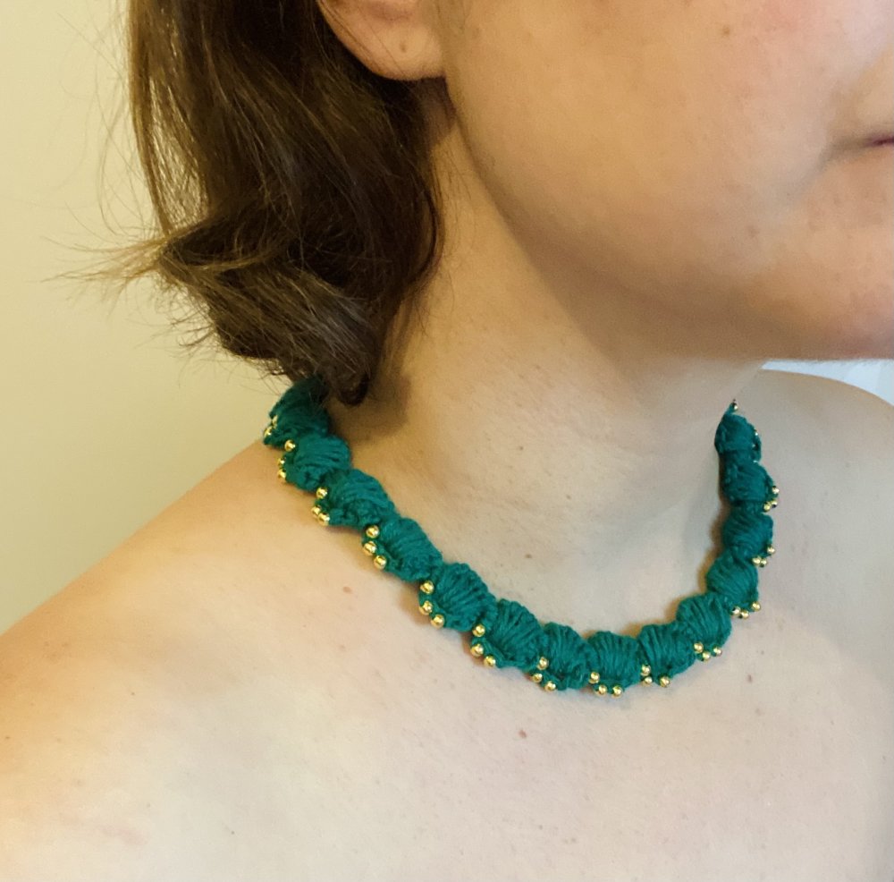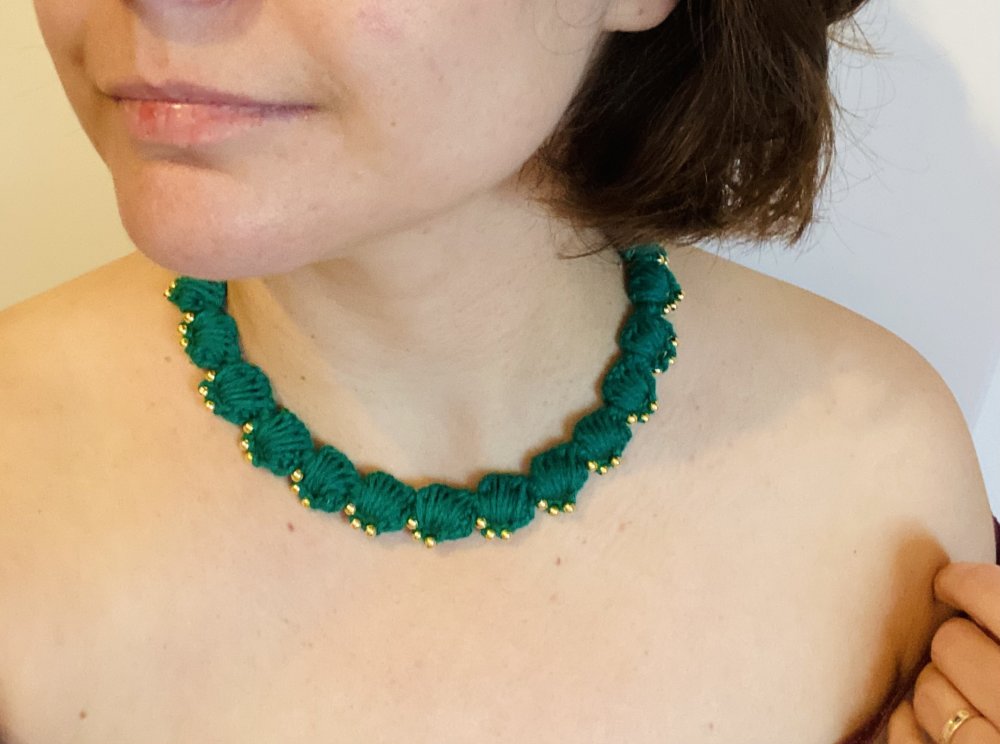 Elles sont réalisées au maximum dans un esprit écolo et récup (laine et coton de qualité chinés en brocante, perles de verre issues d’ancien bijoux).