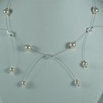 Composé de ronde nacré 6, 8 mm et toupie 6 mm en cristal de swarovski sur fil câblé argenté.