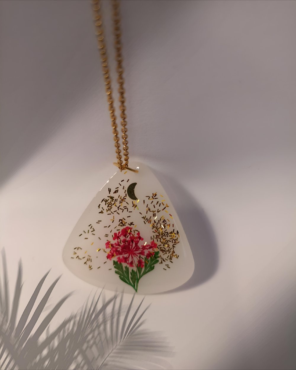 Suspendu à une chaîne dorée en acier inoxydable, ce collier est l'accessoire parfait pour sublimer une tenue quotidienne ou ajouter une note de poésie à une occasion spéciale.