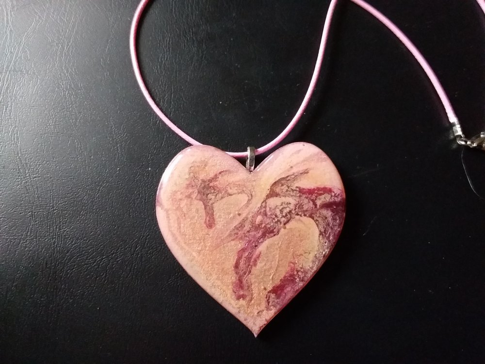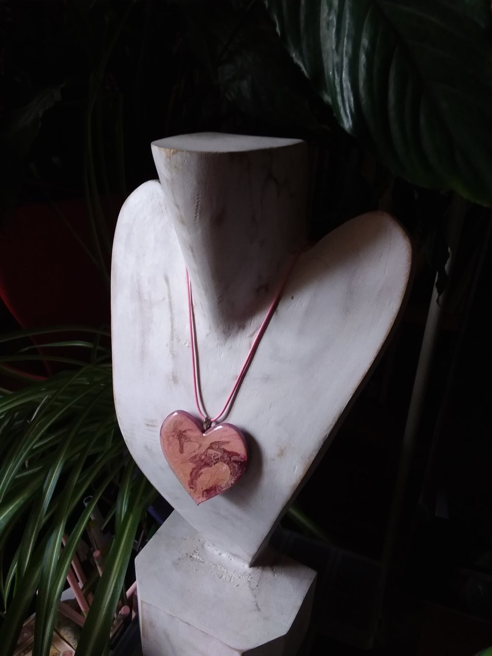 Cœur en bois, décoré et résiné à la main par une artiste 6x5