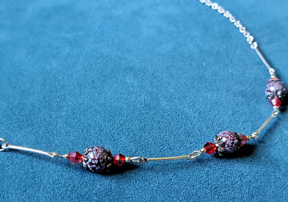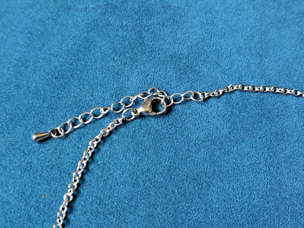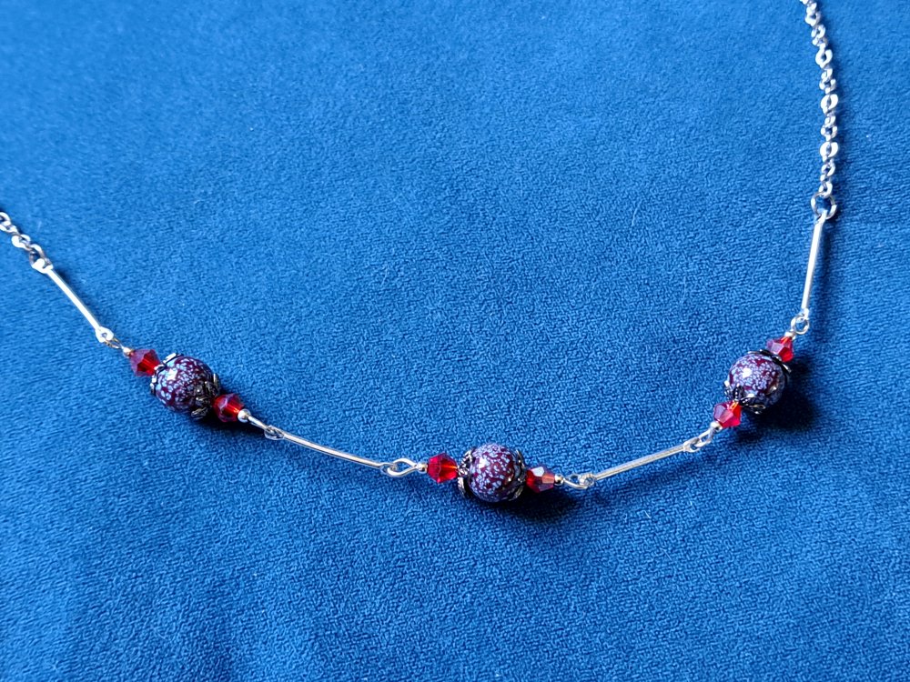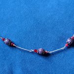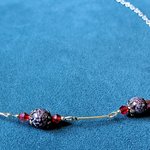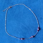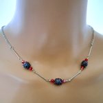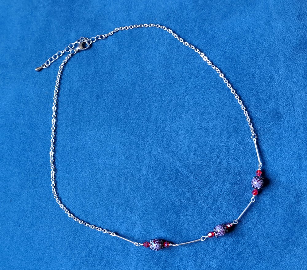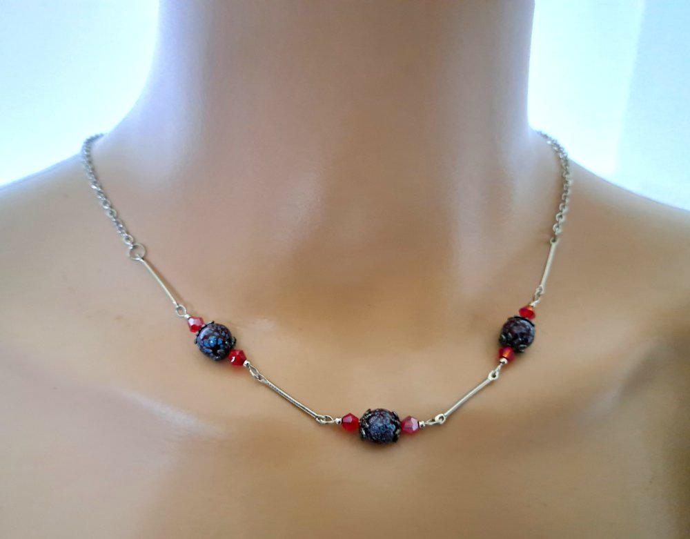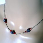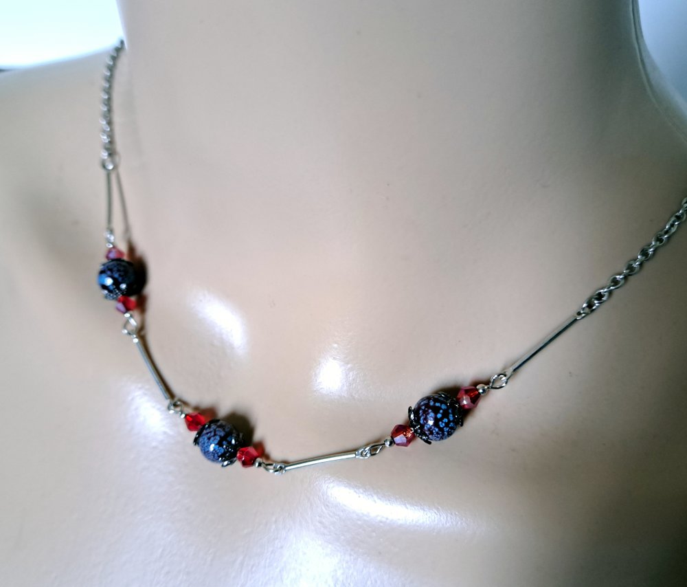 collier, perles en verre rouge, bleu, fermoir, chaîne en acier inoxydable argenté