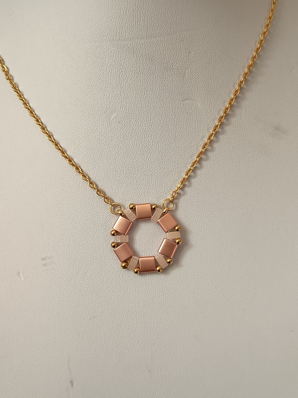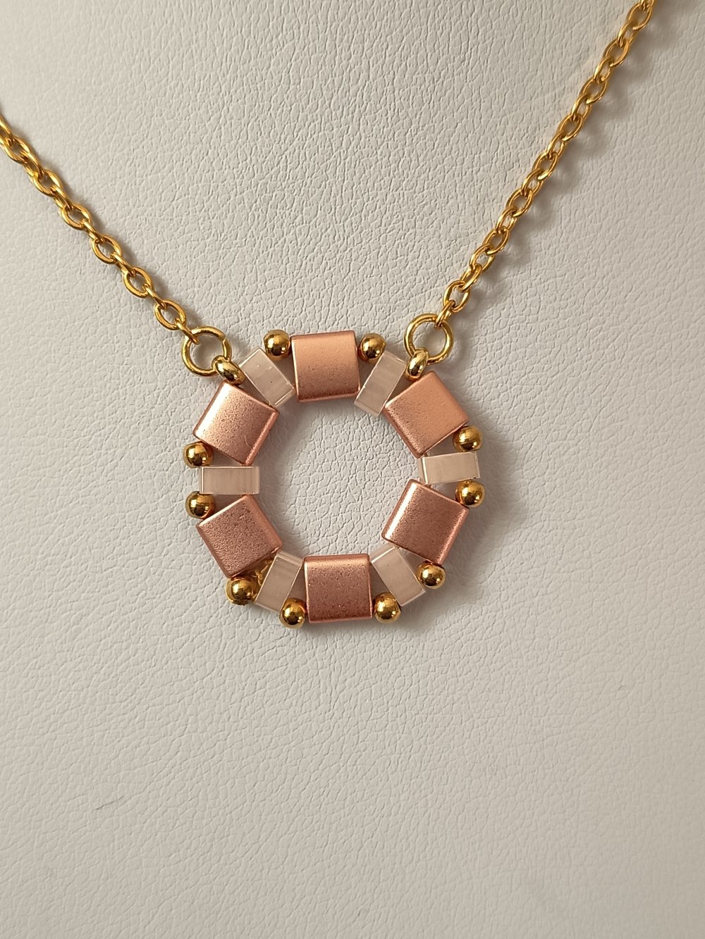- Collier ras du cou à la main en perles Miyuki Tila et Miyuki Delica. Il mesure 40 cm + 7 cm de chaine d'extension. le tout en acier inoxydable