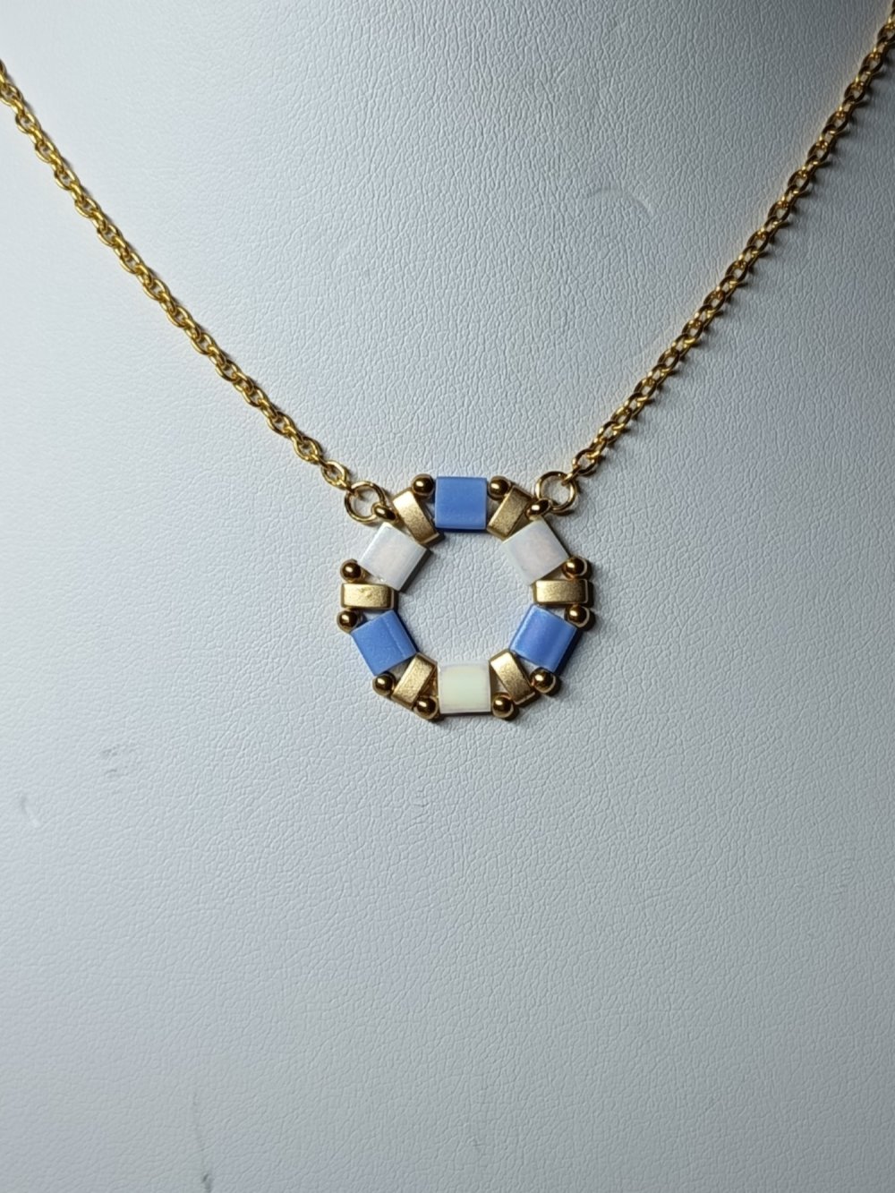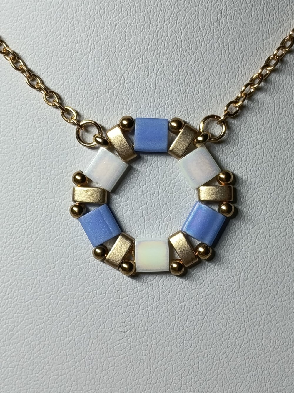 - Collier ras du cou à la main en perles Miyuki Tila et Miyuki Delica. Il mesure 40 cm + 7 cm de chaine d'extension. le tout en acier inoxydable