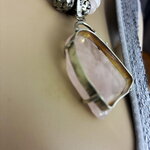 Superbe pendentif très original en quartz rose brut épais 7mm sur métal argenté. Pièce unique !