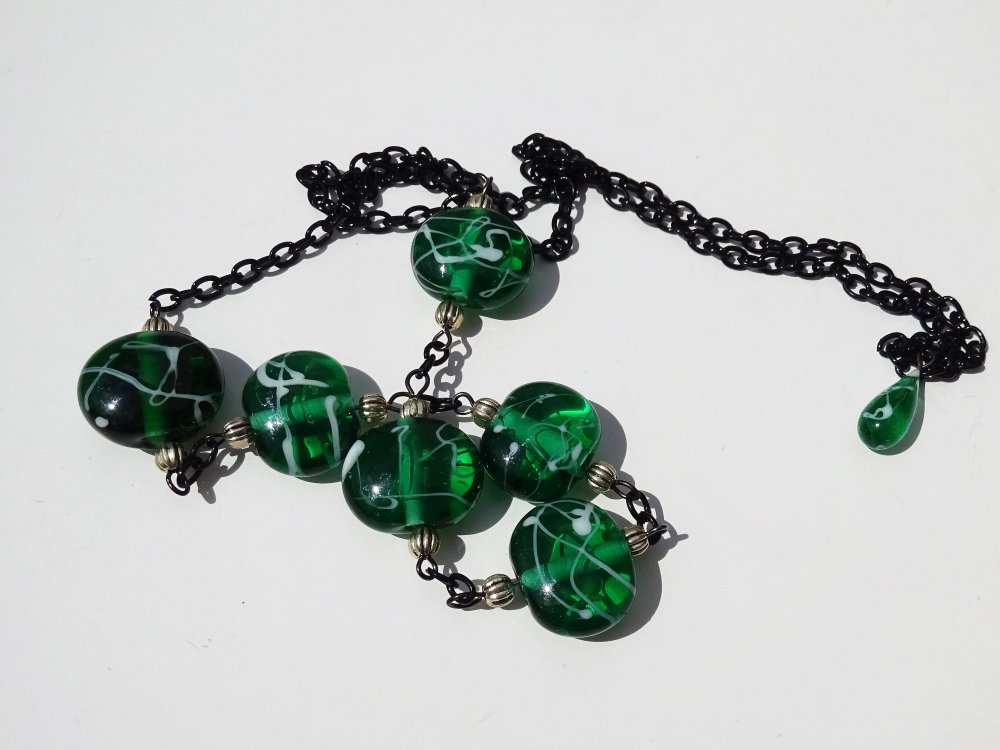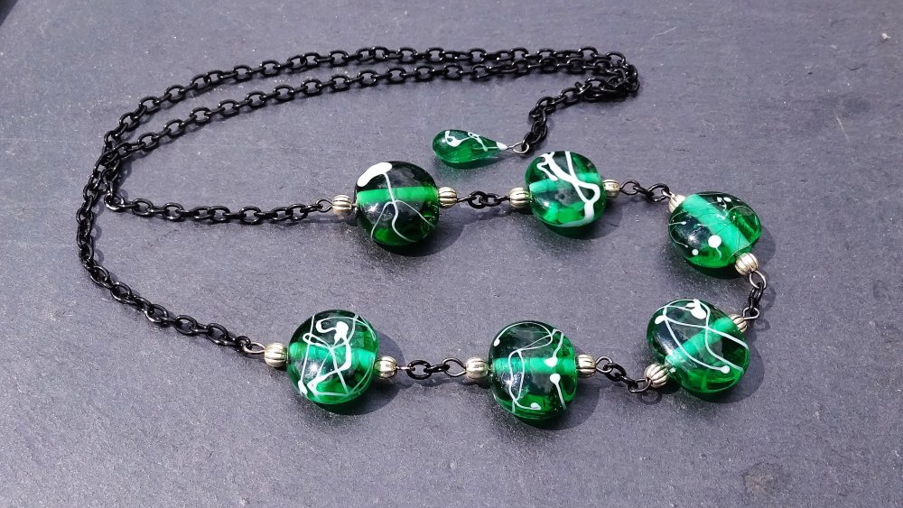collier constitué de perles faites main en verre de Murano certifié de première qualité (Effetre).