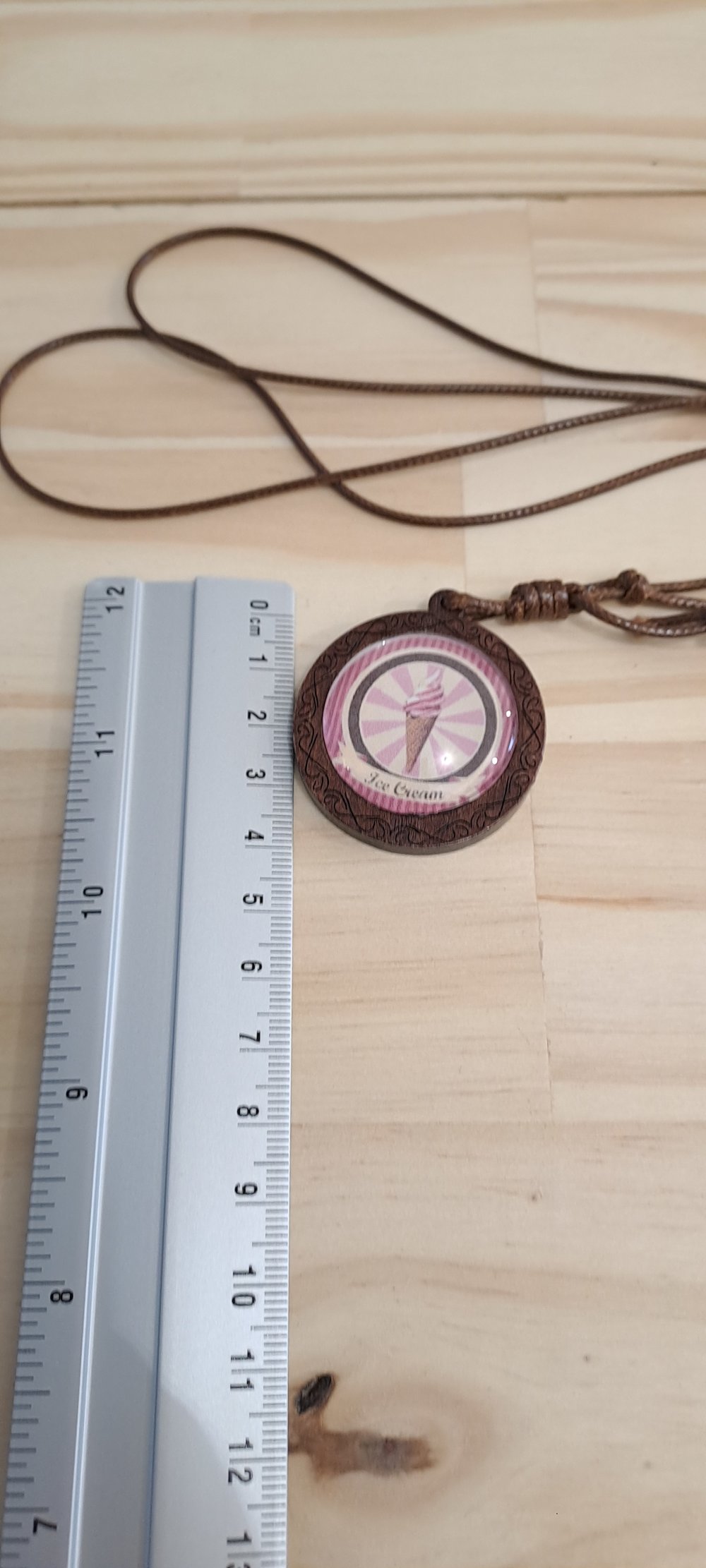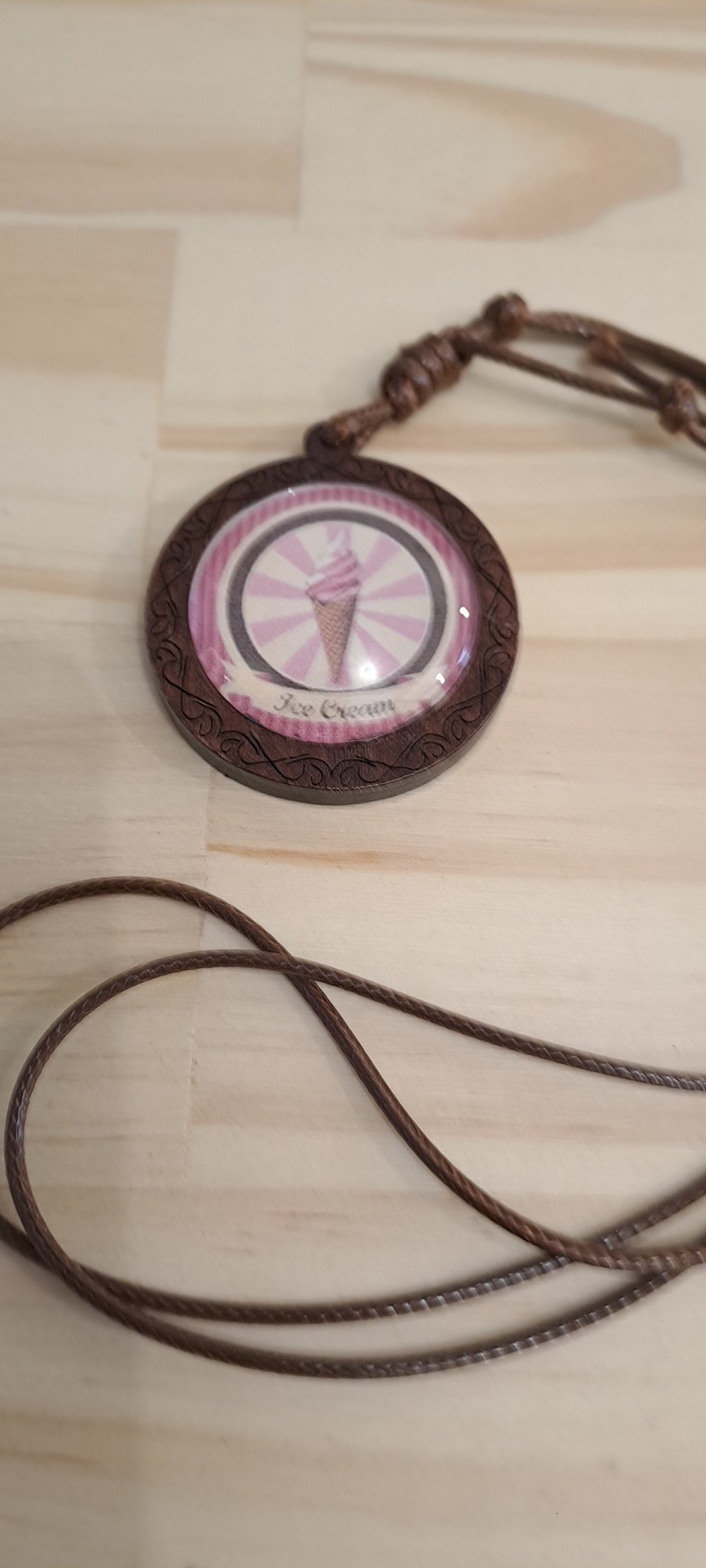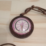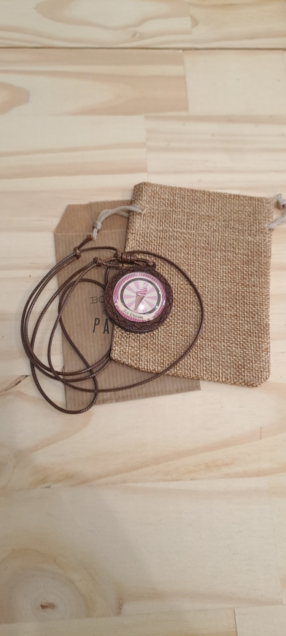 Collier cabochon bois et coton enduit, collier réglable