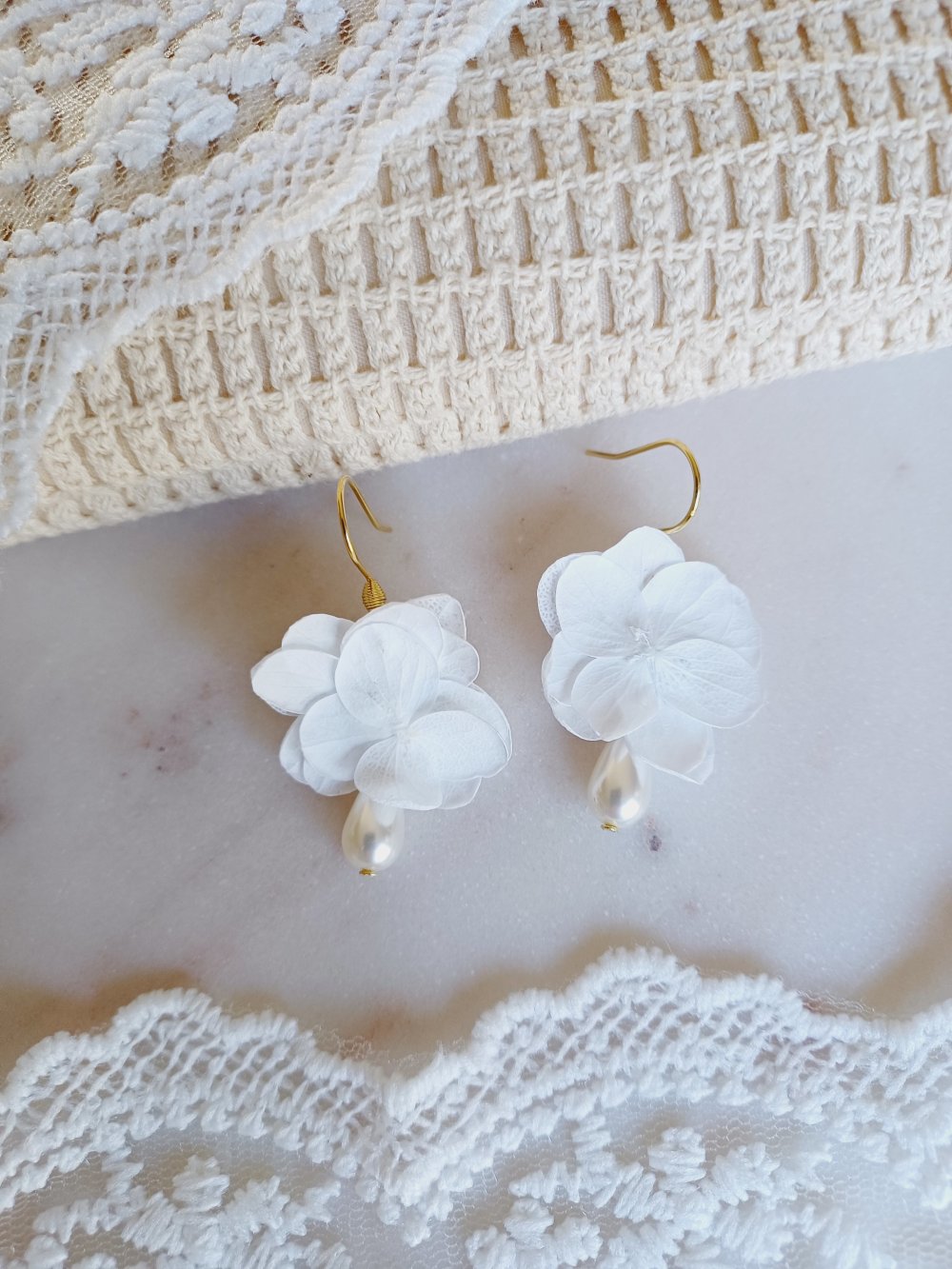 Collier de mariée à Hortensias naturels blancs stabilisés.