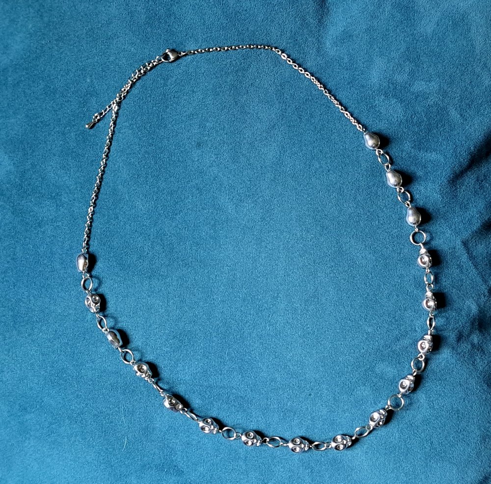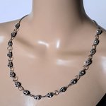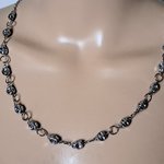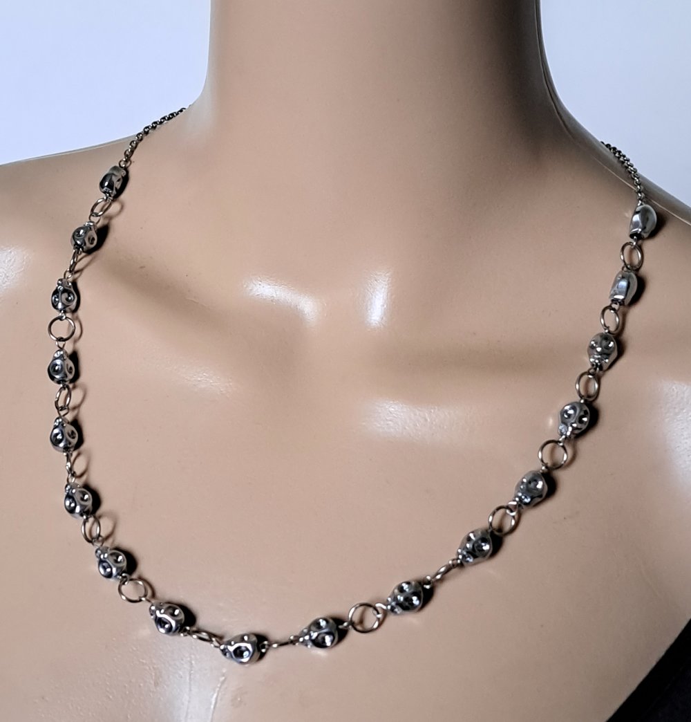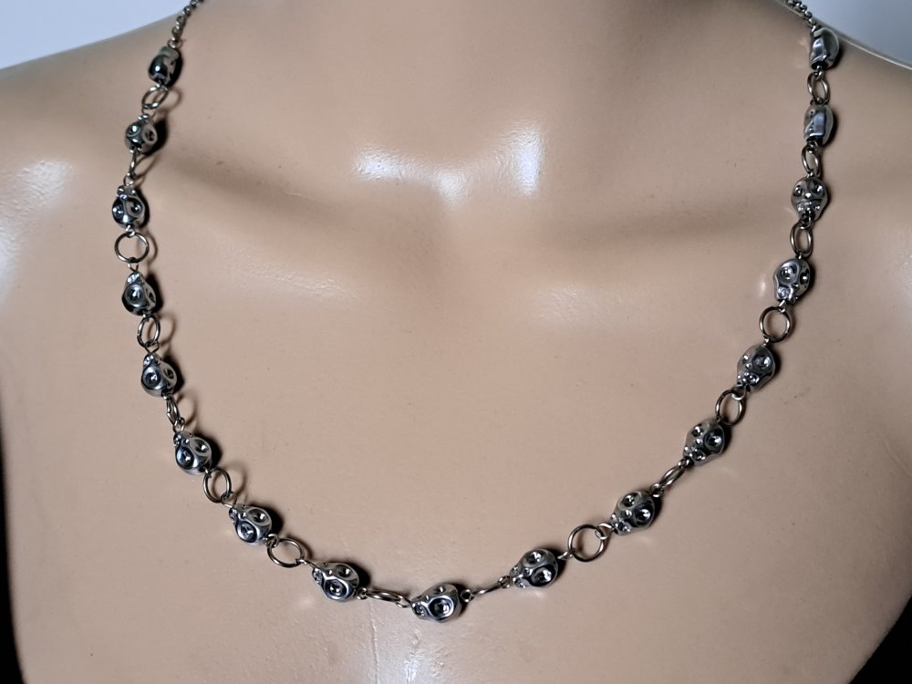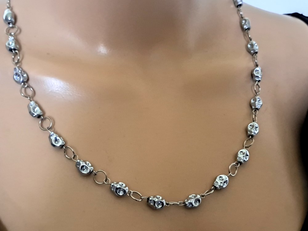 collier tête de mort en verre argenté , fermoir, chaîne en acier inoxydable argenté