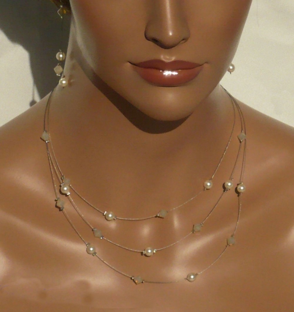 Collier Trilemme ivoire. Bijoux mariage, collier mariée, collier cérémonie.