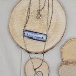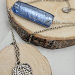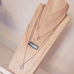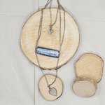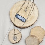 Un collier triple rang délicat et lumineux, orné d’une perle de verre bleue issue d’un bijou oublié.