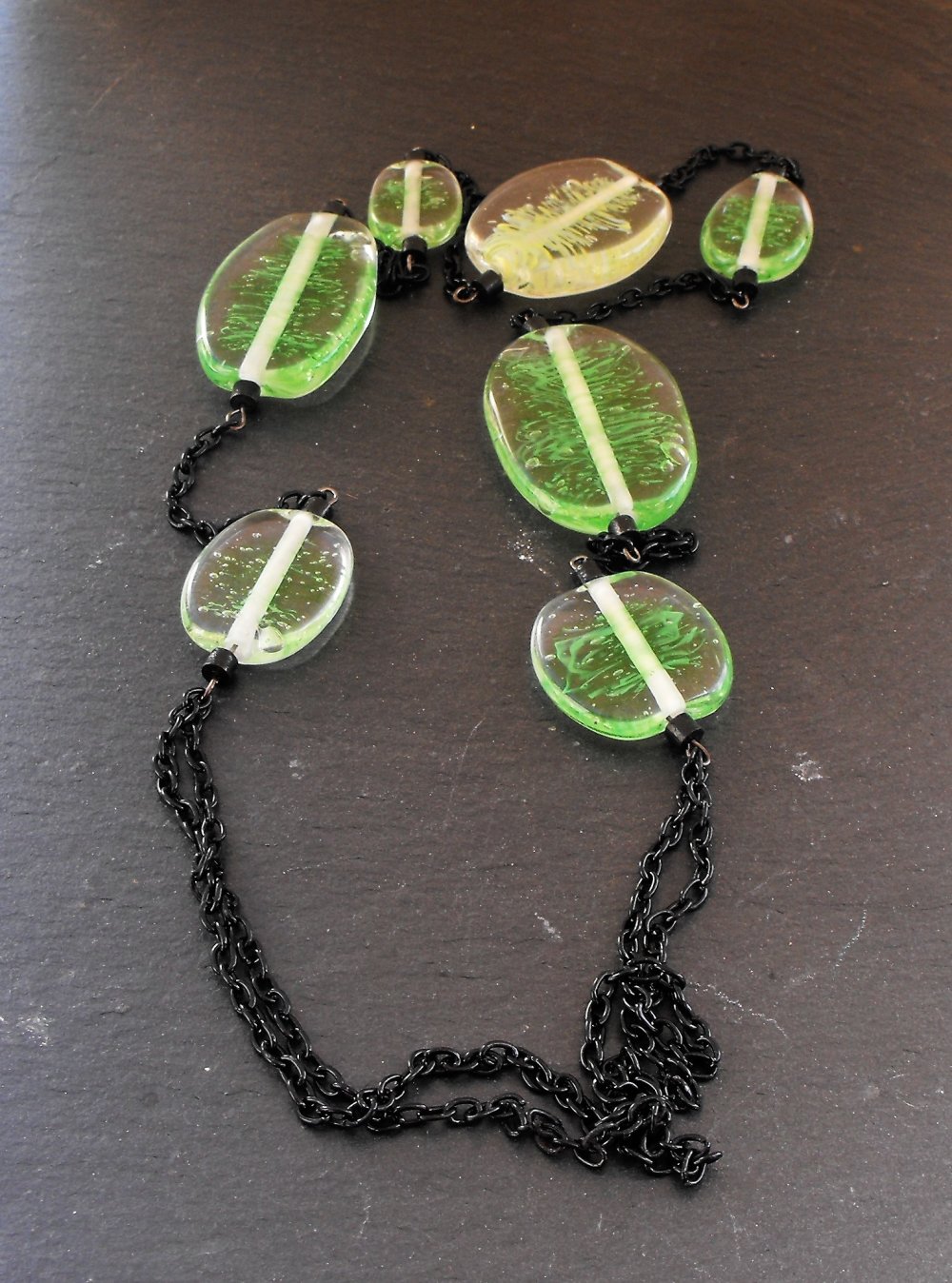 collier constitué de perles faites main en verre de Murano certifié de première qualité (Effetre).