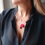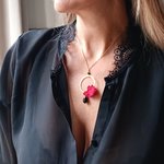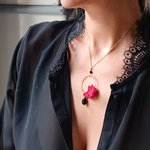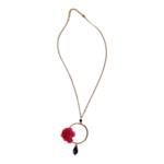 FLAMENCO- collier femme en acier doré, leur rouge et perles noires.