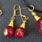 Parure pendentif + boucles assorties, verre de murano, verre filé, lampwork, cl.1060