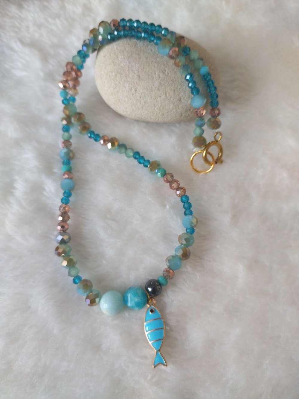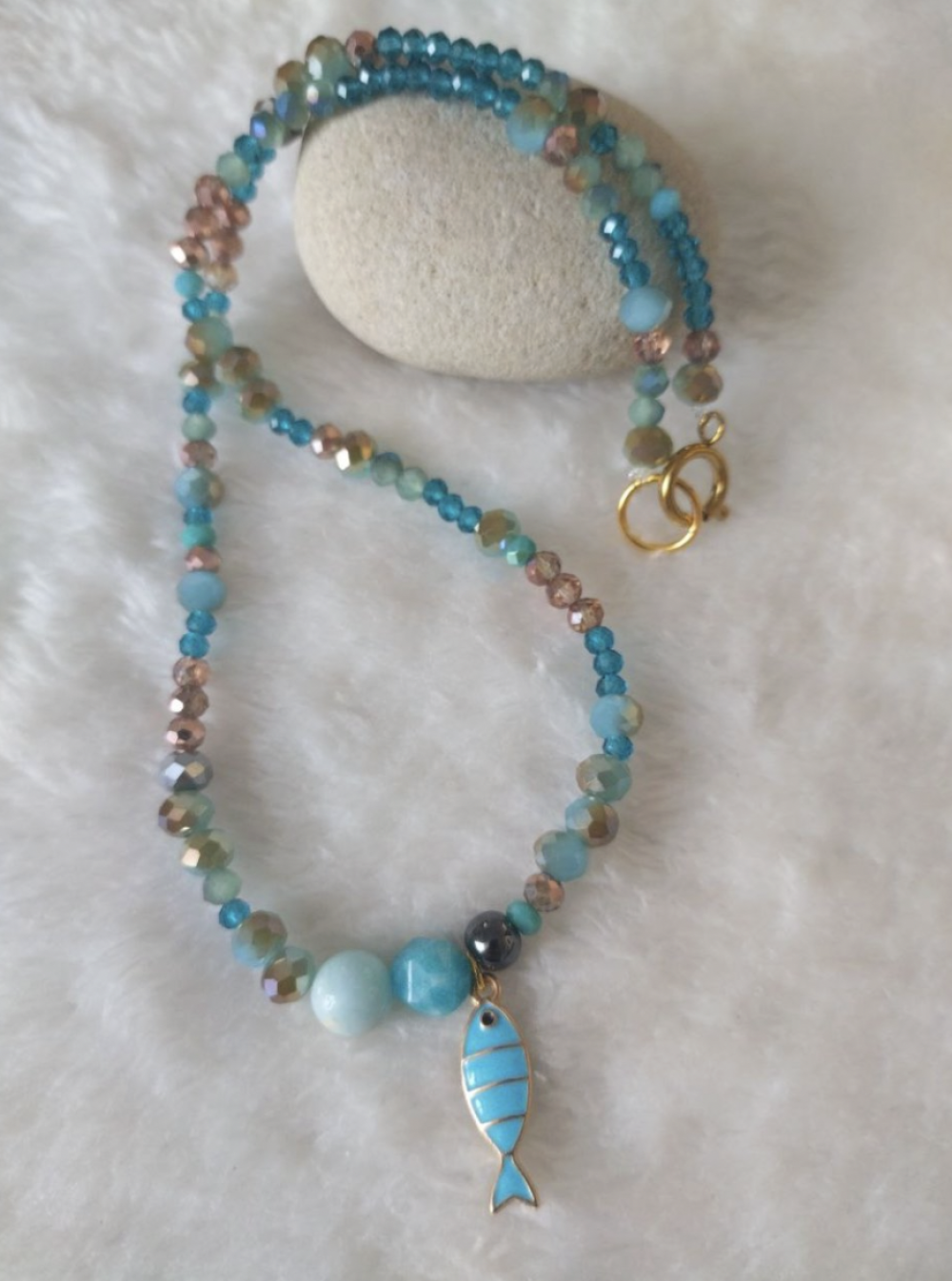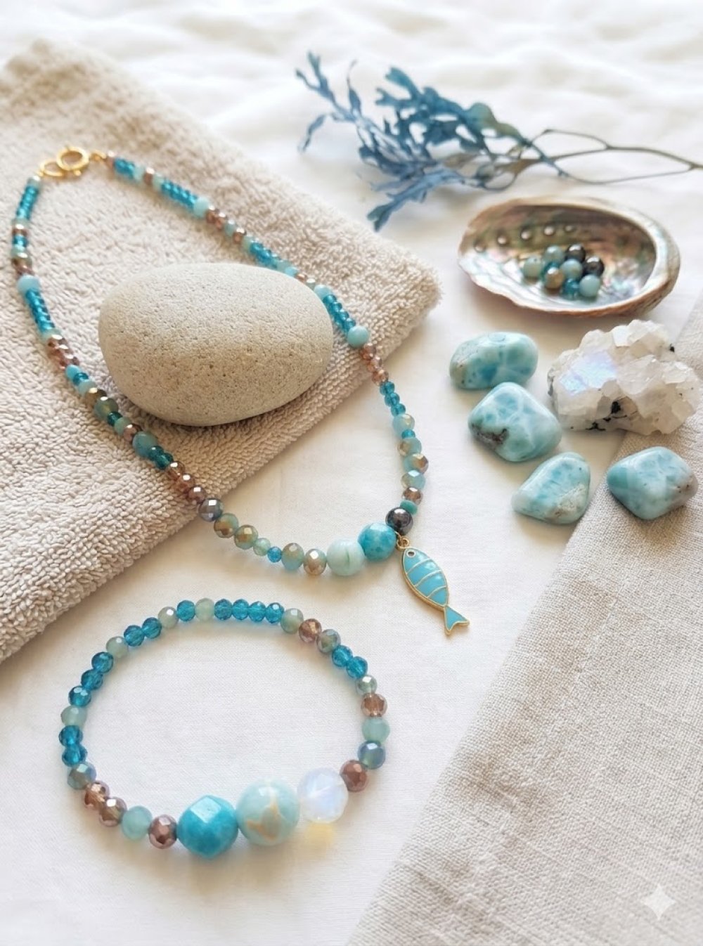 ✨ Parure Poisson – Amazonite & Hématite ✨