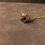 Le pendentif est un cube d'environ 1 cm sur 1. La chaîne en acier inoxydable à une longueur d'environ 50 cm.