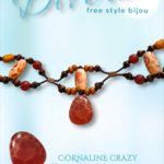 DIVERSO free style bijouX - ras du cou ( pièce unique) avec pierre CORNALINE crazy et ses 4 perles + petites perles bois. Cordons bruns élastiques resistant.(Voir ses vertus ci - dessous)