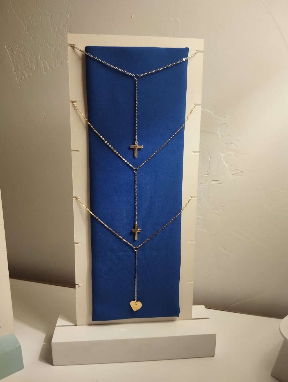 1 ) croix laiton sur chaîne acier doré , choisir taille 1 cm