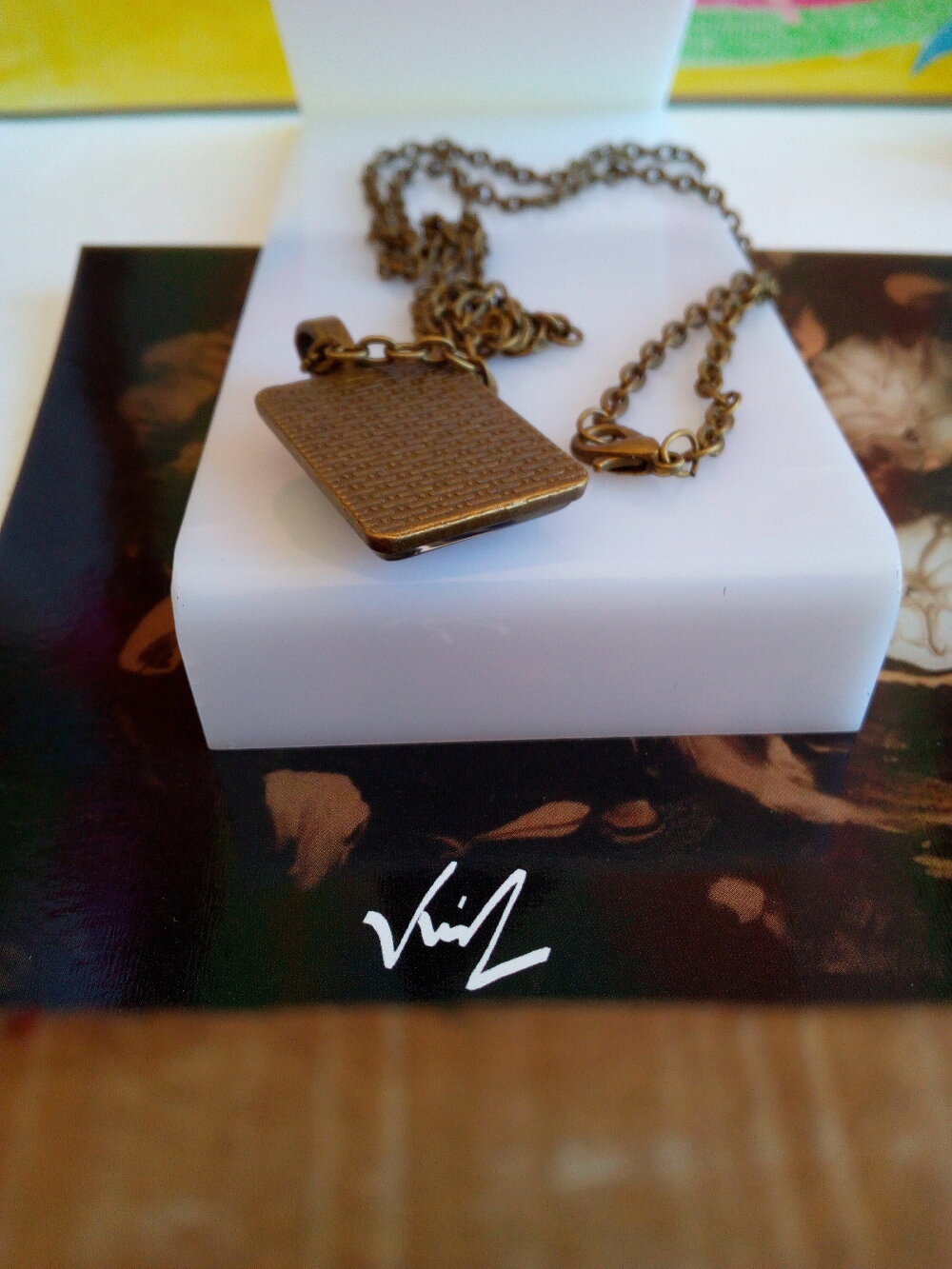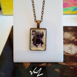 laiton bronze,verre loupe,peinture,mes mains,ma technique ma passion, cabochons en verre loupe rectangle 18x25mm, chaîne forçat laiton bronze 70cm avec fermoir mousqueton,