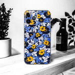 1. Découvrez notre coque souple pour iPhone Wax ibiscus O, ornée d'un motif floral bleu et jaune.