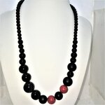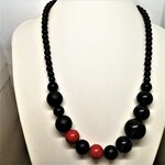 Perles en onyx noir et perles en corail rouge