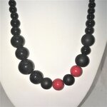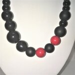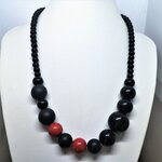 Corail rouge, onyx noir mat, brillant, collier grosses perles bijoux femme 45cm