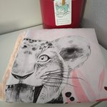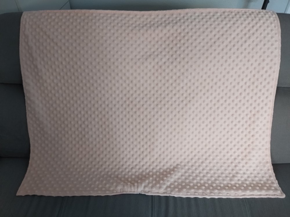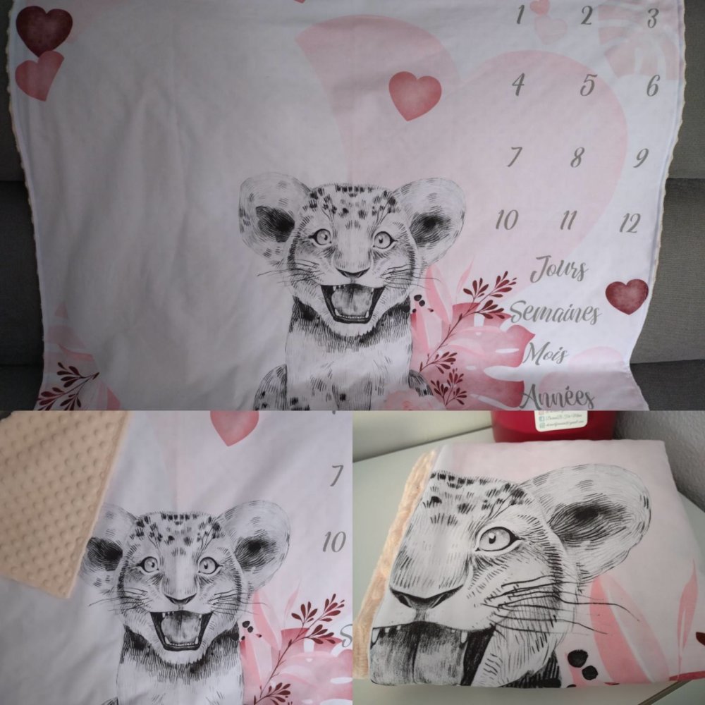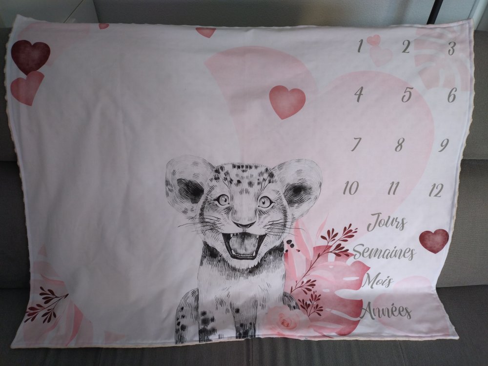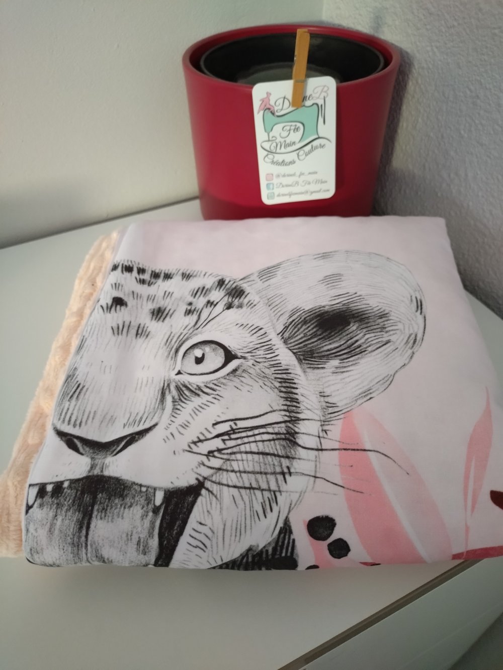 Double face, il est cousu dans un joli coton à motif d'un côté et d'un minky de l'autre.