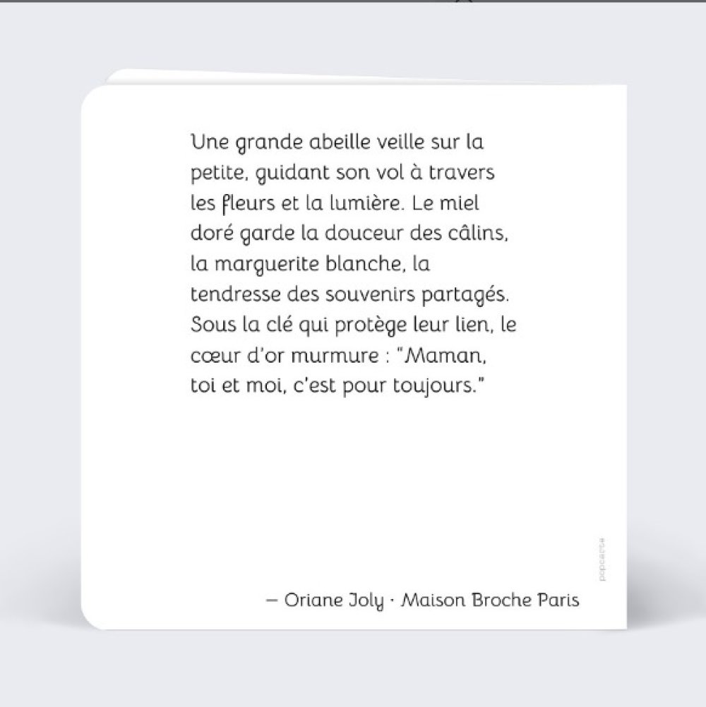 Une grande abeille veille sur la petite — symbole de tendresse, de protection et de lien éternel.