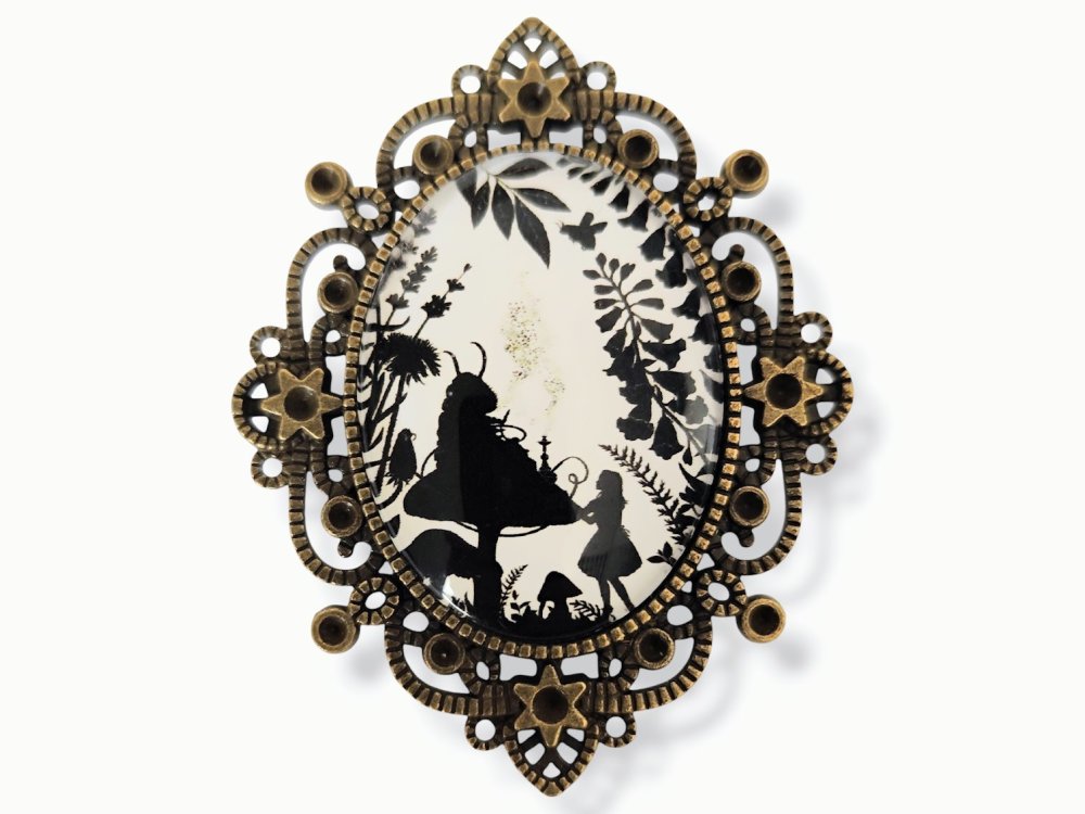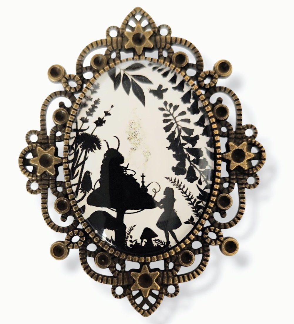 Broche Alice et chenille qui fume. Accessoire Pays des Merveilles. Broche originale grand format - Cadeau d'anniversaire idéal pour amie fan d'Alice..