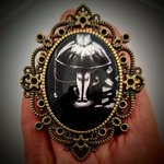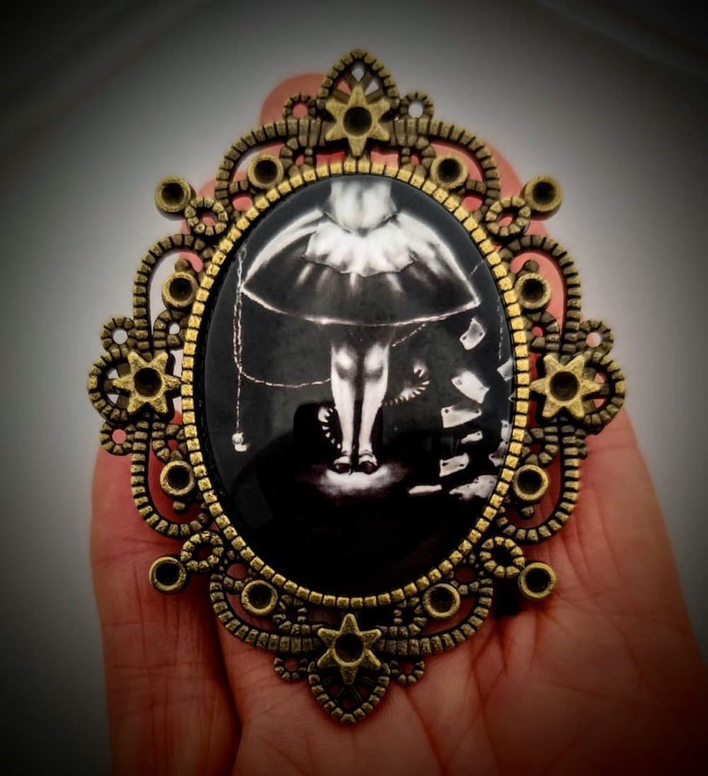 Broche camée Alice gothique au pays des merveilles chat du cheshire lapin blanc tim burton