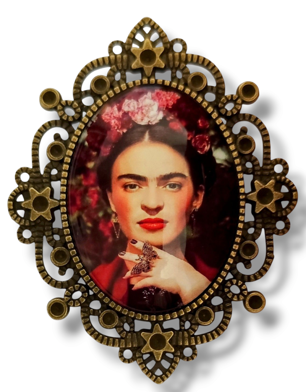 Broche cabochon Frida Kahlo. Style retro vintage. Grand format. Accessoire Frida pour toutes les femmes féministes. Frida Kahlo, artiste peintre, incarne l'esprit de l'art populaire mexicain.