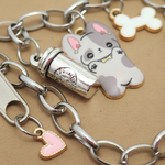 Façonnée à la main en métal argenté, ornée de breloques émaillées délicatement colorées,