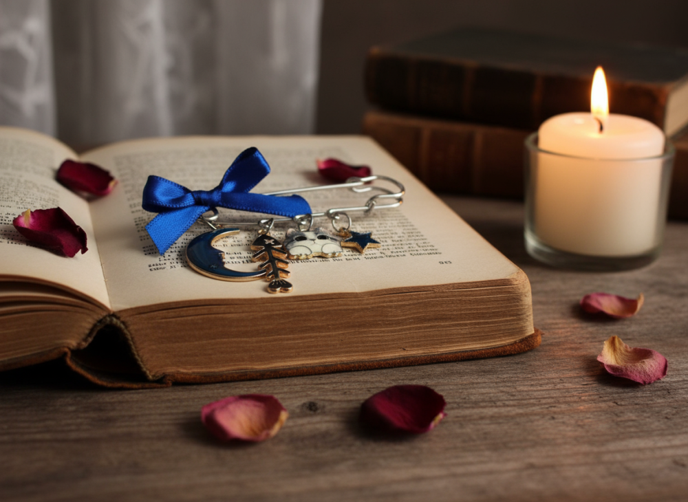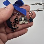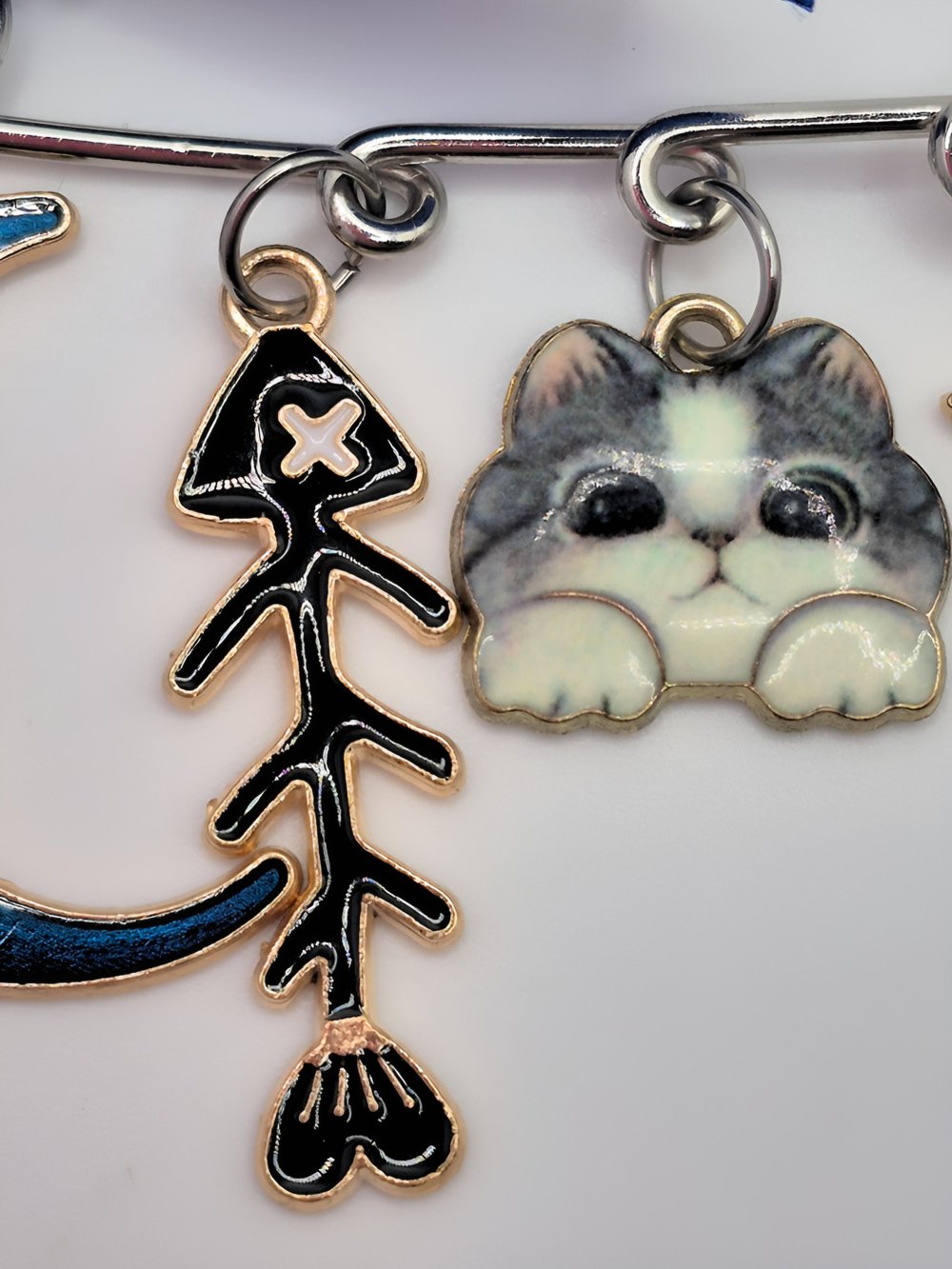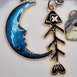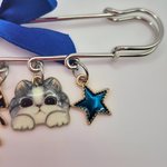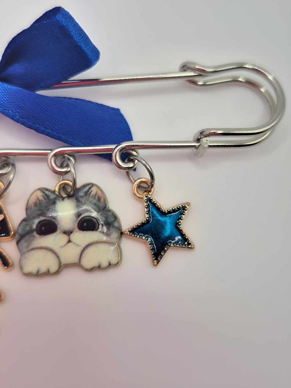 Retrouvez ma broche en vidéo ici :J’ai imaginé un chat gris perché sur un croissant de lune, guidé par les étoiles et porteur de secrets. Cette broche chat poétique de 6.5 cm, en métal doré avec breloques émaillées (chat, lune, étoile), est une création artisanale unique, jamais reproduite. Élégante et mystérieuse, elle se porte facilement sur une veste, un foulard ou un manteau.