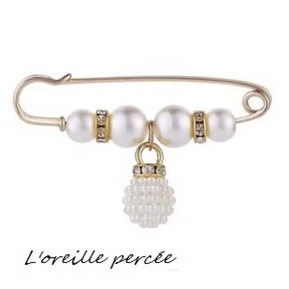 Broche perle ronde et strass