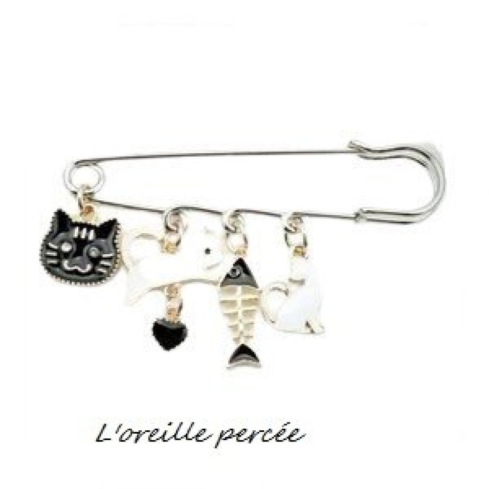 Broche réaliser avec un support broche épingle et ses breloques en émail sur le thème poisson et chat.