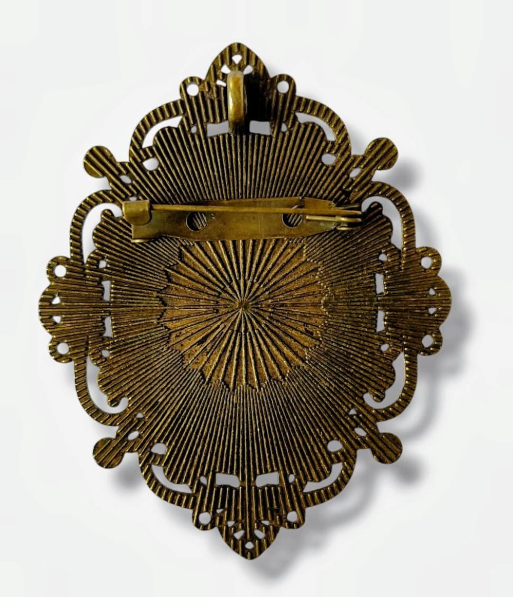 -Taille: hauteur = 6cms. Largeur = 5cms pour l'ensemble. Le cabochon fait lui 4cms x 3cms.