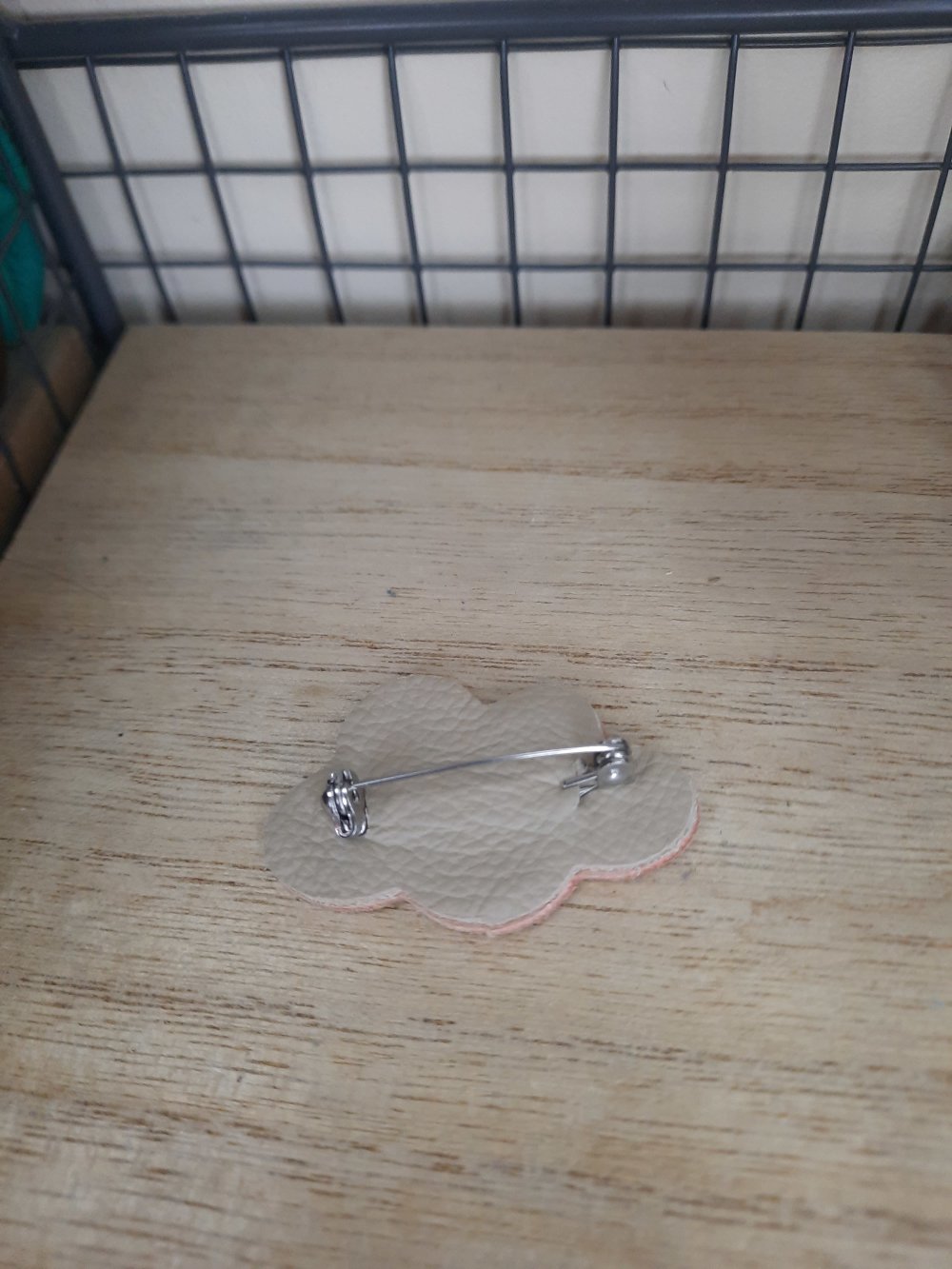 Jolie broche en forme de nuage, en cuir, fait à la main avec 🩵 en Alsace.