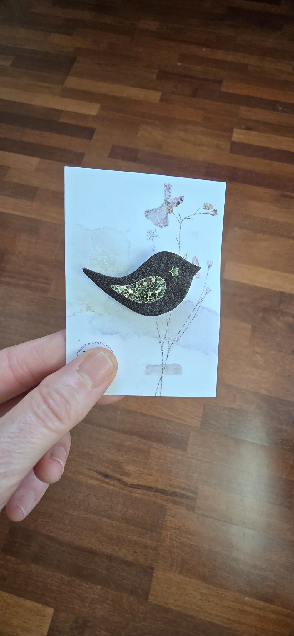 En cuir et paillettes, elles sont toutes réalisées entièrement à la main, par mes soins, du modèle à la conception.