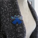 100% réalisé par mes soins, voici une belle broche « gros papillon » faite en résine à paillettes bleu marine et des petites fleurs assorties. Cette broche fait 66 x 48 mm